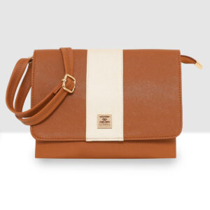 ESBEDA Tan Bobbie Colorblock Textured PU Flap Sling Bag For Women