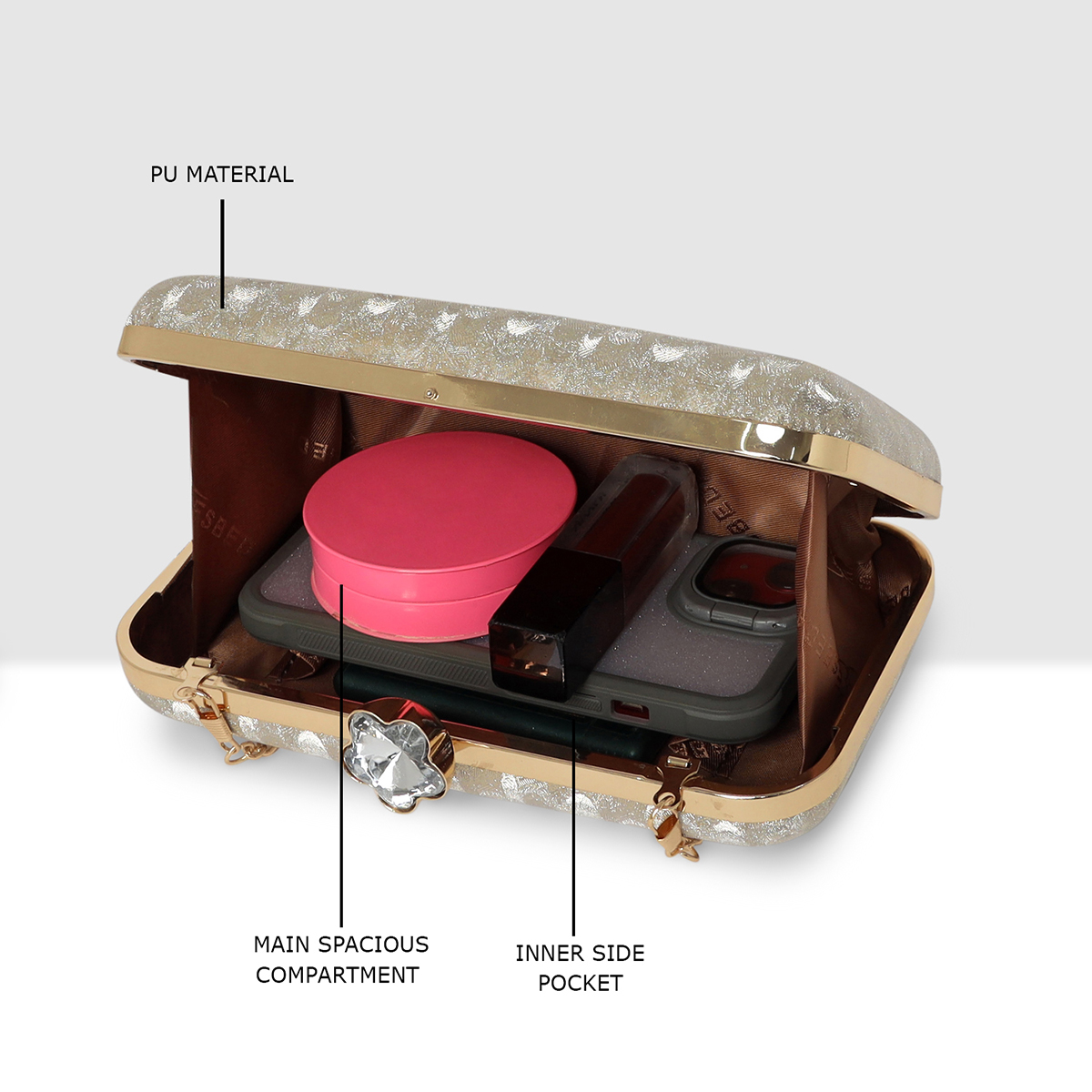 • Compact & Stylish Ideal size to carry essentials like phone, cards, cash, and small makeup items.
