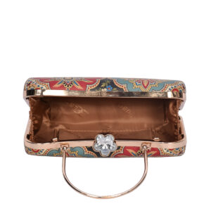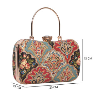 The sleek metal frame and sculpted top clasp add a refined finish, while the detachable chain strap offers versatile styling. Perfect for festive gatherings, weddings, and evening events, this clutch effortlessly elevates both traditional and modern outfits.