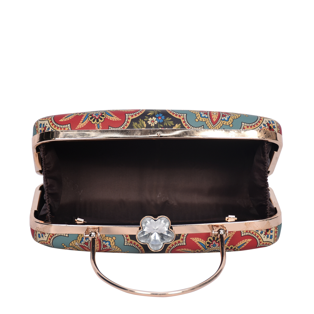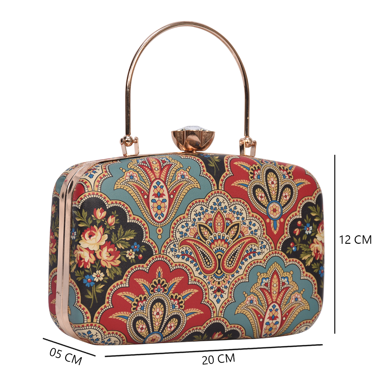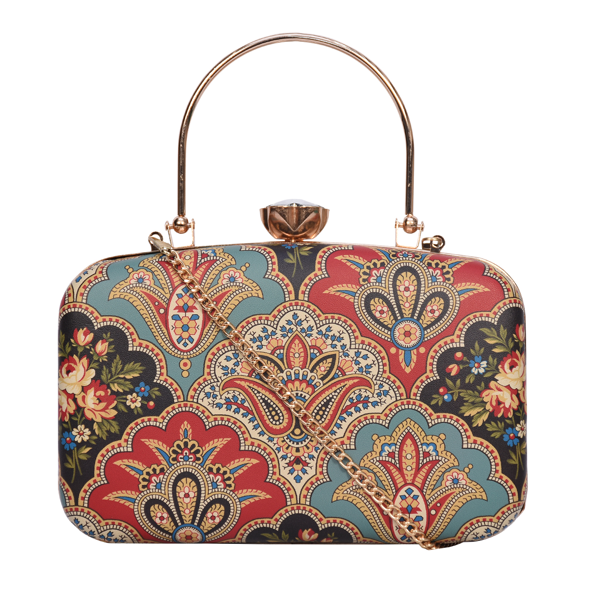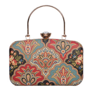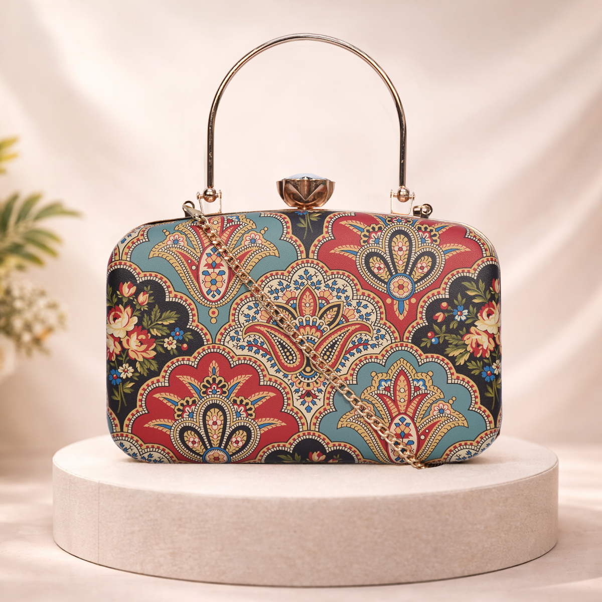 The sleek metal frame and sculpted top clasp add a refined finish, while the detachable chain strap offers versatile styling. Perfect for festive gatherings, weddings, and evening events, this clutch effortlessly elevates both traditional and modern outfits.