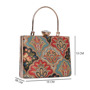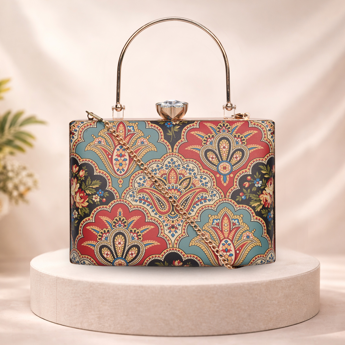 The sleek metal frame and sculpted top clasp add a refined finish, while the detachable chain strap offers versatile styling. Perfect for festive gatherings, weddings, and evening events, this clutch effortlessly elevates both traditional and modern outfits.