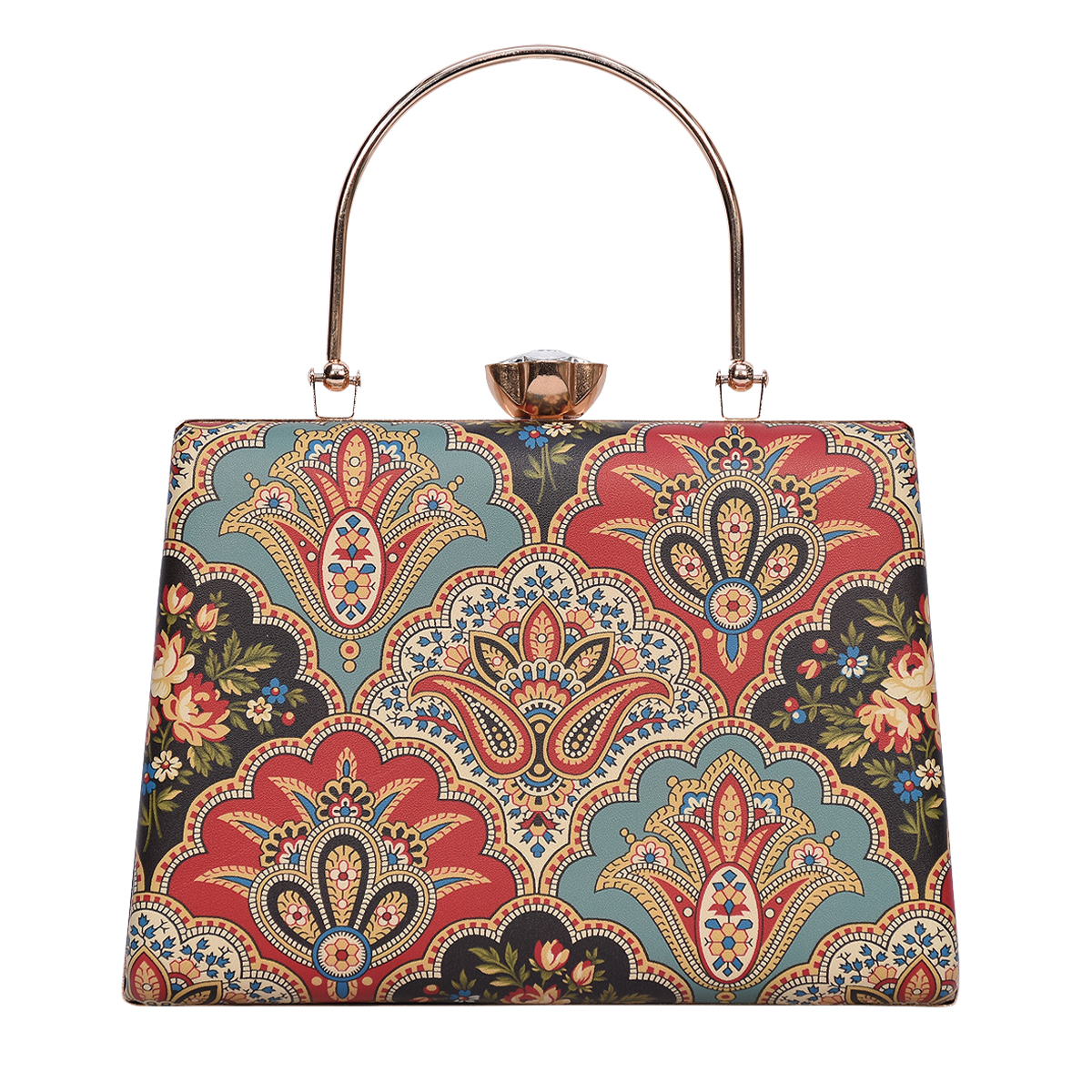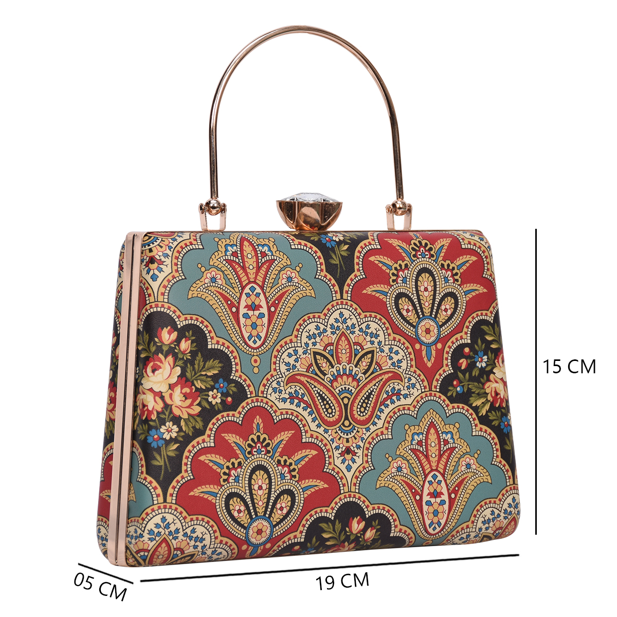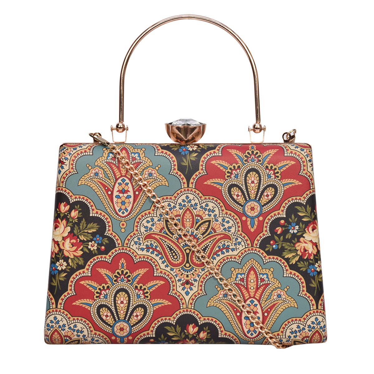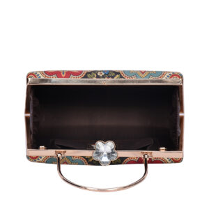 The sleek metal frame and sculpted top clasp add a refined finish, while the detachable chain strap offers versatile styling. Perfect for festive gatherings, weddings, and evening events, this clutch effortlessly elevates both traditional and modern outfits.