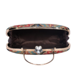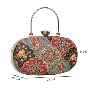 The sleek metal frame and sculpted top clasp add a refined finish, while the detachable chain strap offers versatile styling. Perfect for festive gatherings, weddings, and evening events, this clutch effortlessly elevates both traditional and modern outfits.