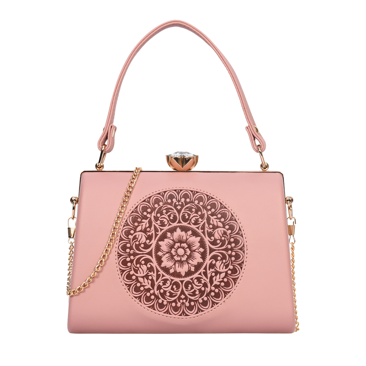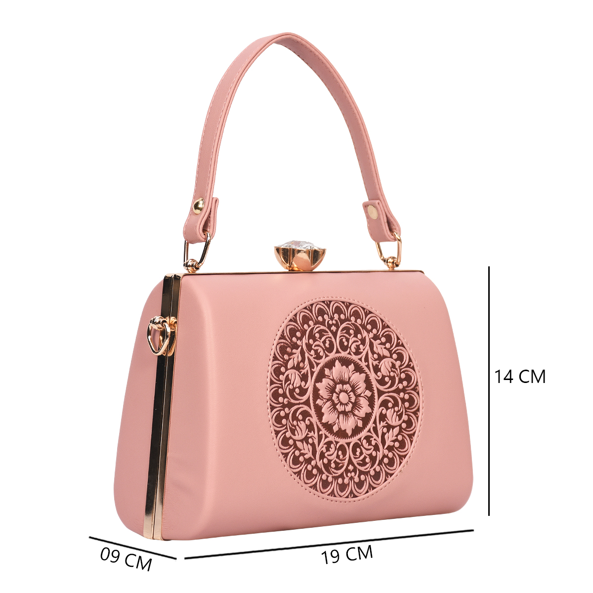This Clutch features an exquisite mandala-inspired embossed pattern that reflects elegance and artistry. The jewel-style metal clasp adds a touch of glamour, making it a perfect companion for special occasions.