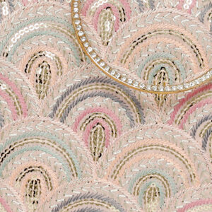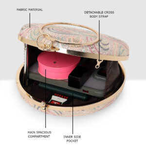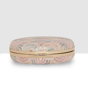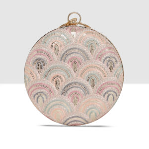 Add a touch of sophistication to your festive and evening looks with the Esbeda Aurora Pastel Embroidered Round Clutch. Designed with exquisite craftsmanship, this clutch features beautiful pastel-toned embroidery arranged in elegant scallop motifs, giving it a premium and artistic appeal.