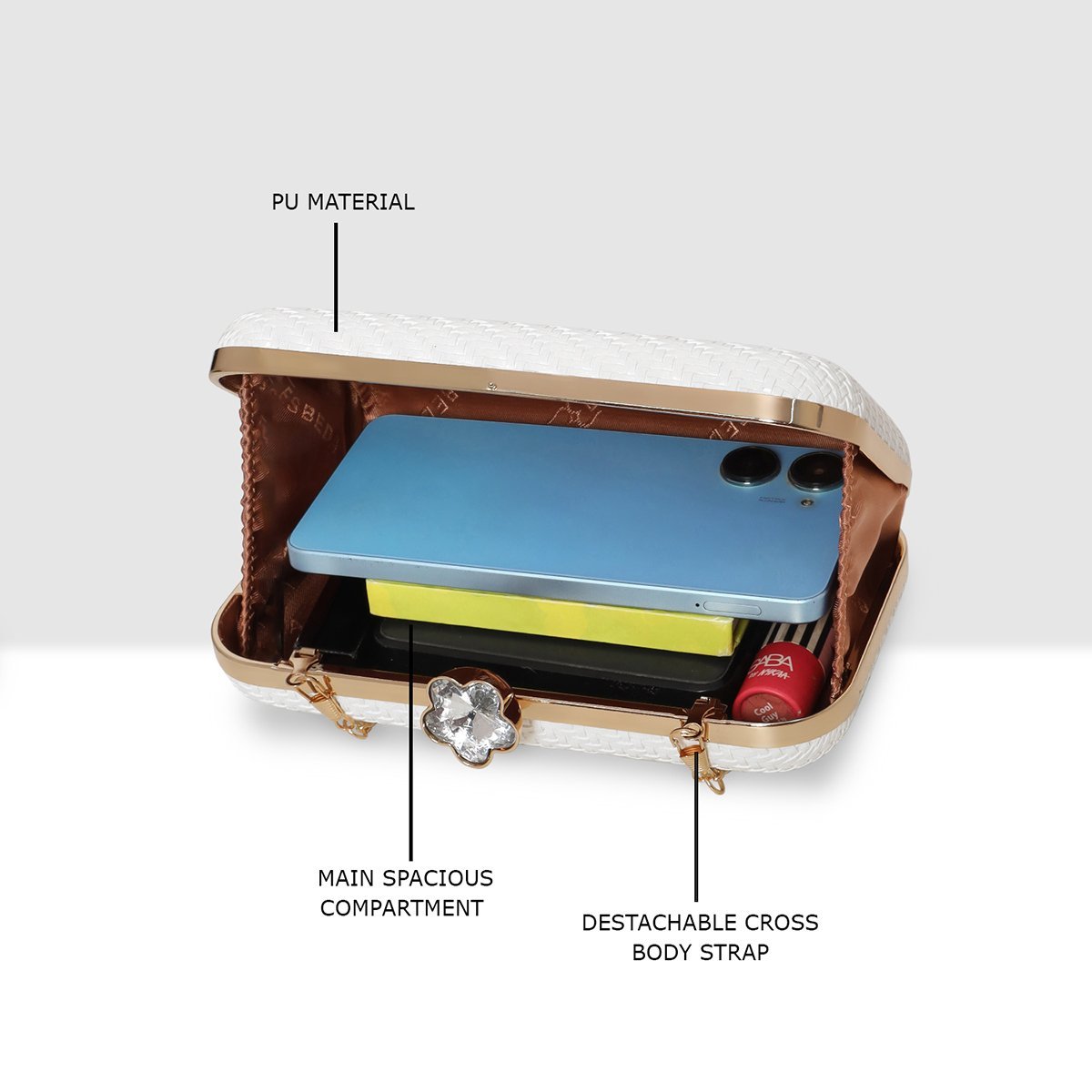 Make a dazzling statement with the Esbeda Sparkle Luxe Women?s Clutch, a perfect blend of sophistication and glamour. Designed with a shimmering woven texture and a gold-tone metal frame.
