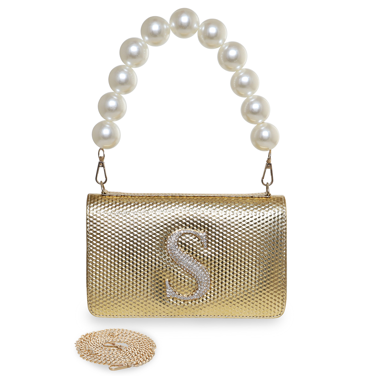 Esbeda Crystal Alphabet Slingbag 1 Main Compartment With Magnetic Snap Closure having detachable pearl and chain straps. Customize your bags with our most favourite Initial Letter. This one is sure to be on everyone’s Wishlist. Get yours today!