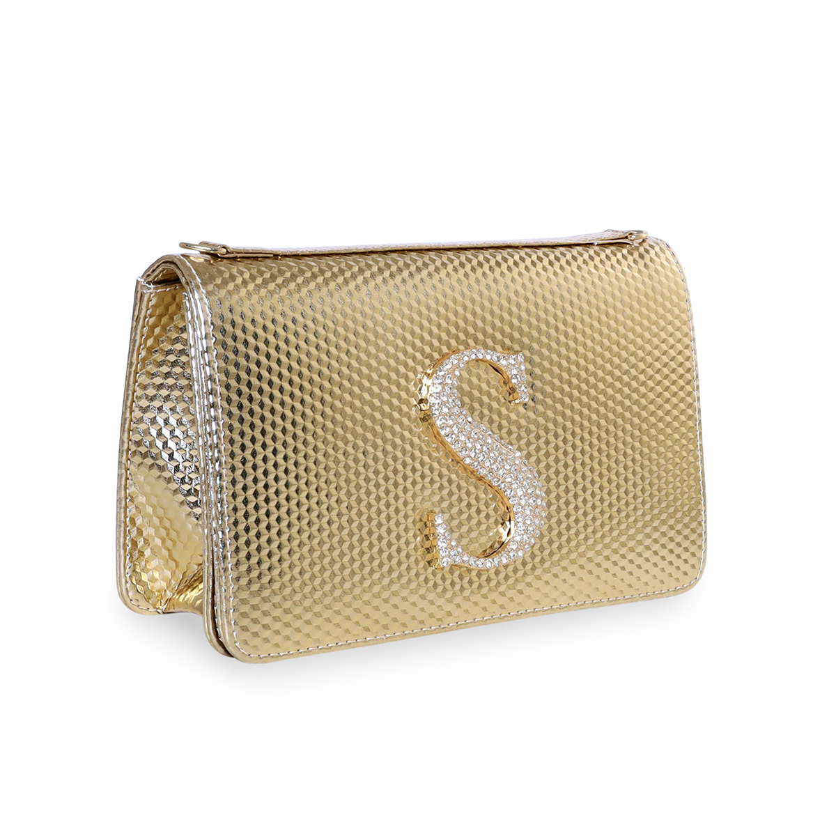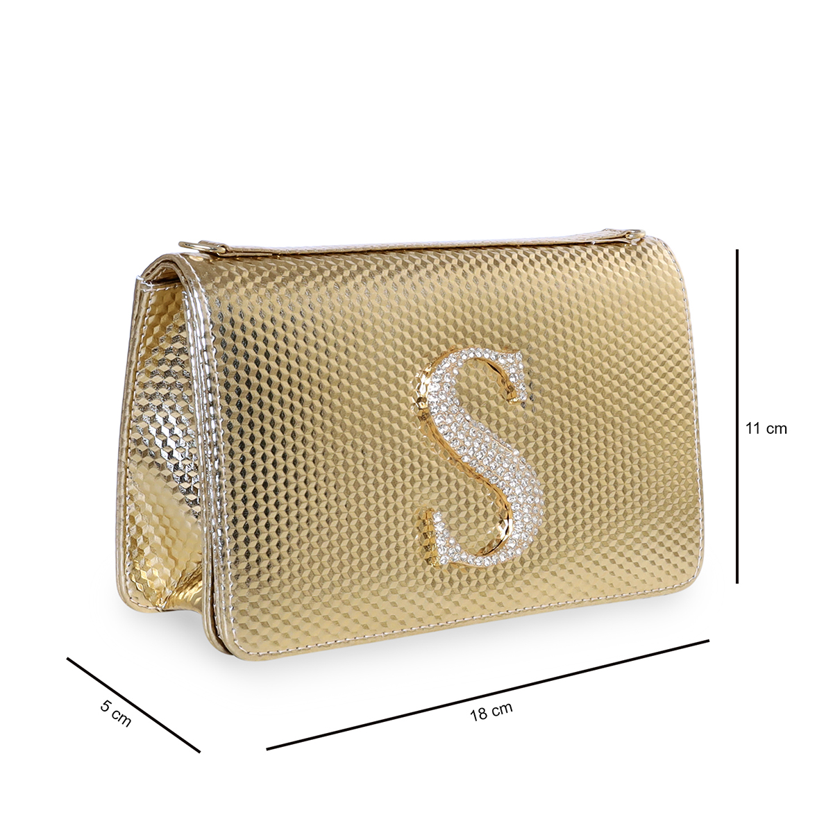 ESBEDA Gold Color Crystal Alphabet Slingbag For Women