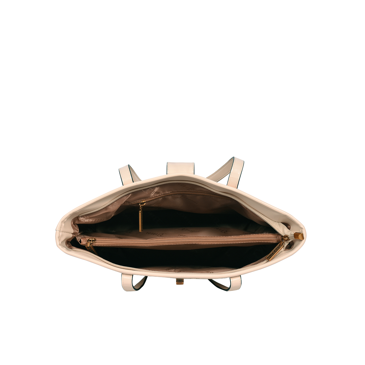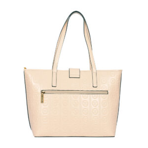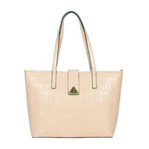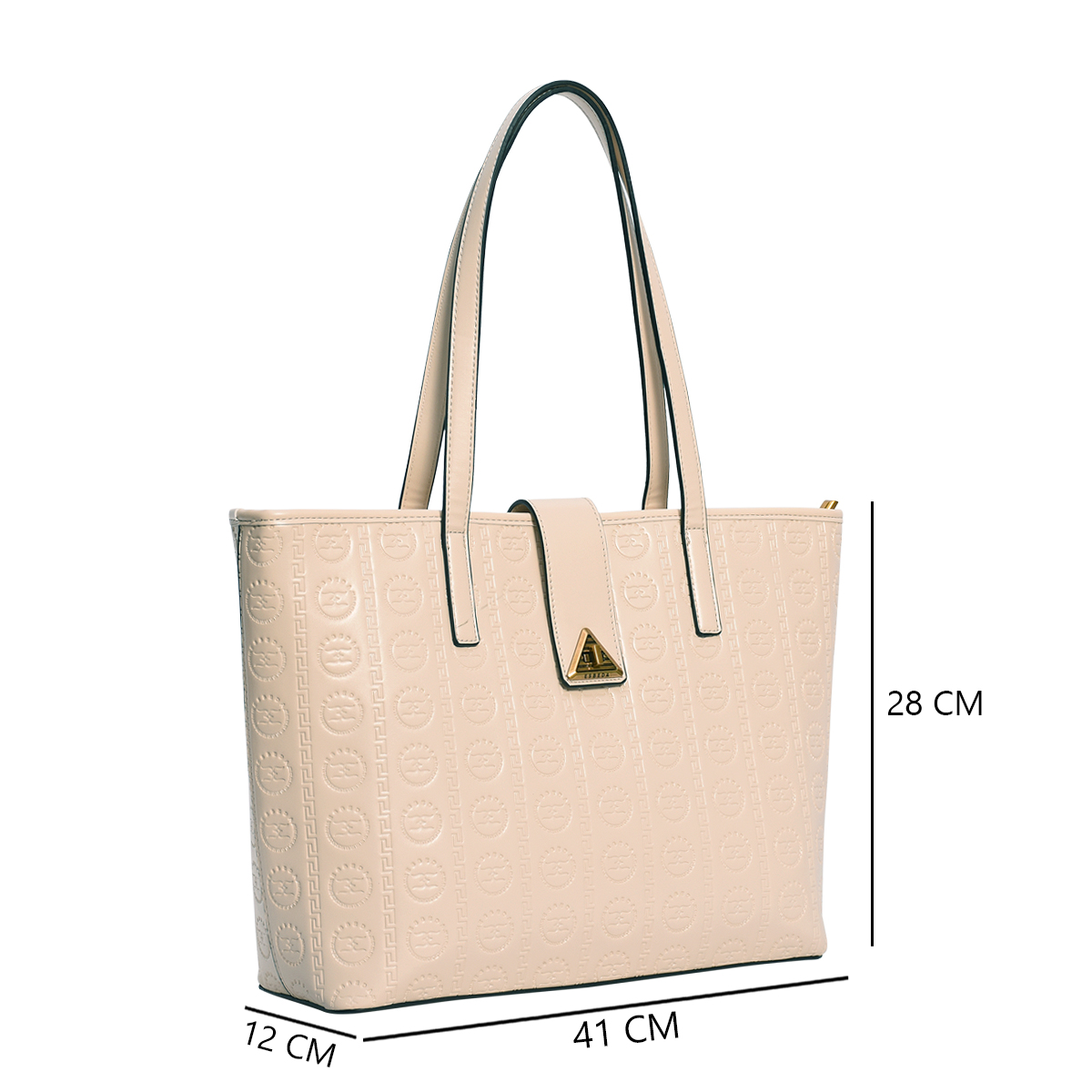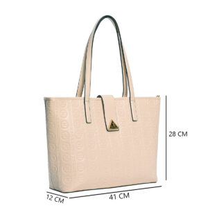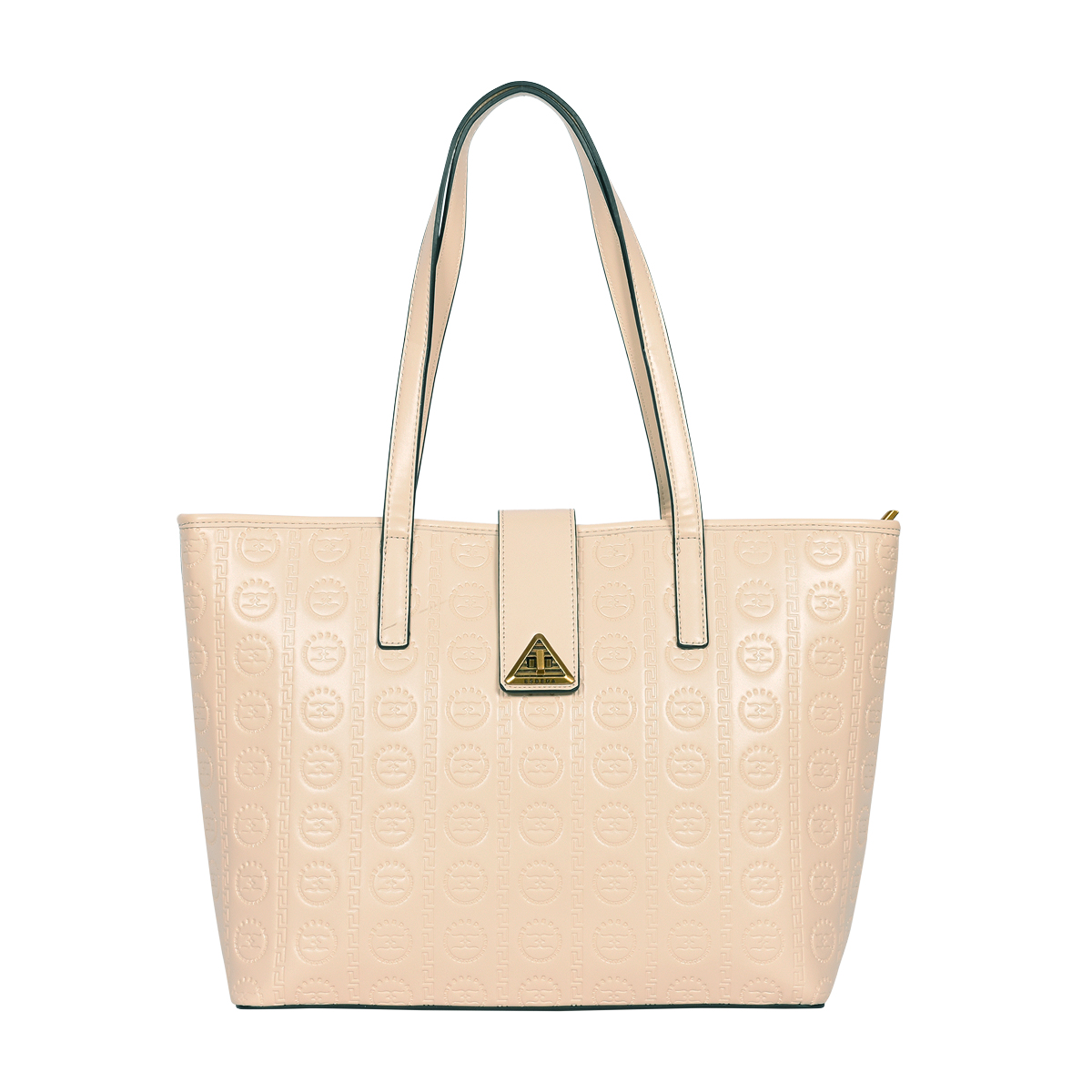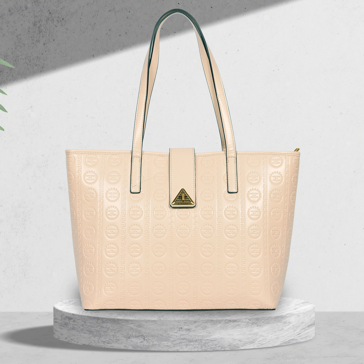 Esbeda Beige Color Embossed Signature Tote Handbag for womens
