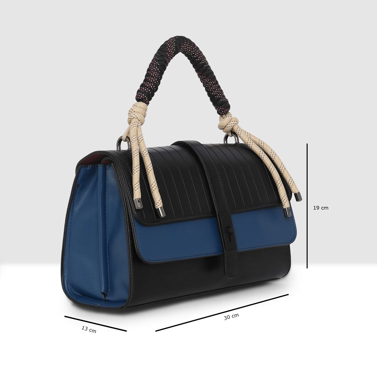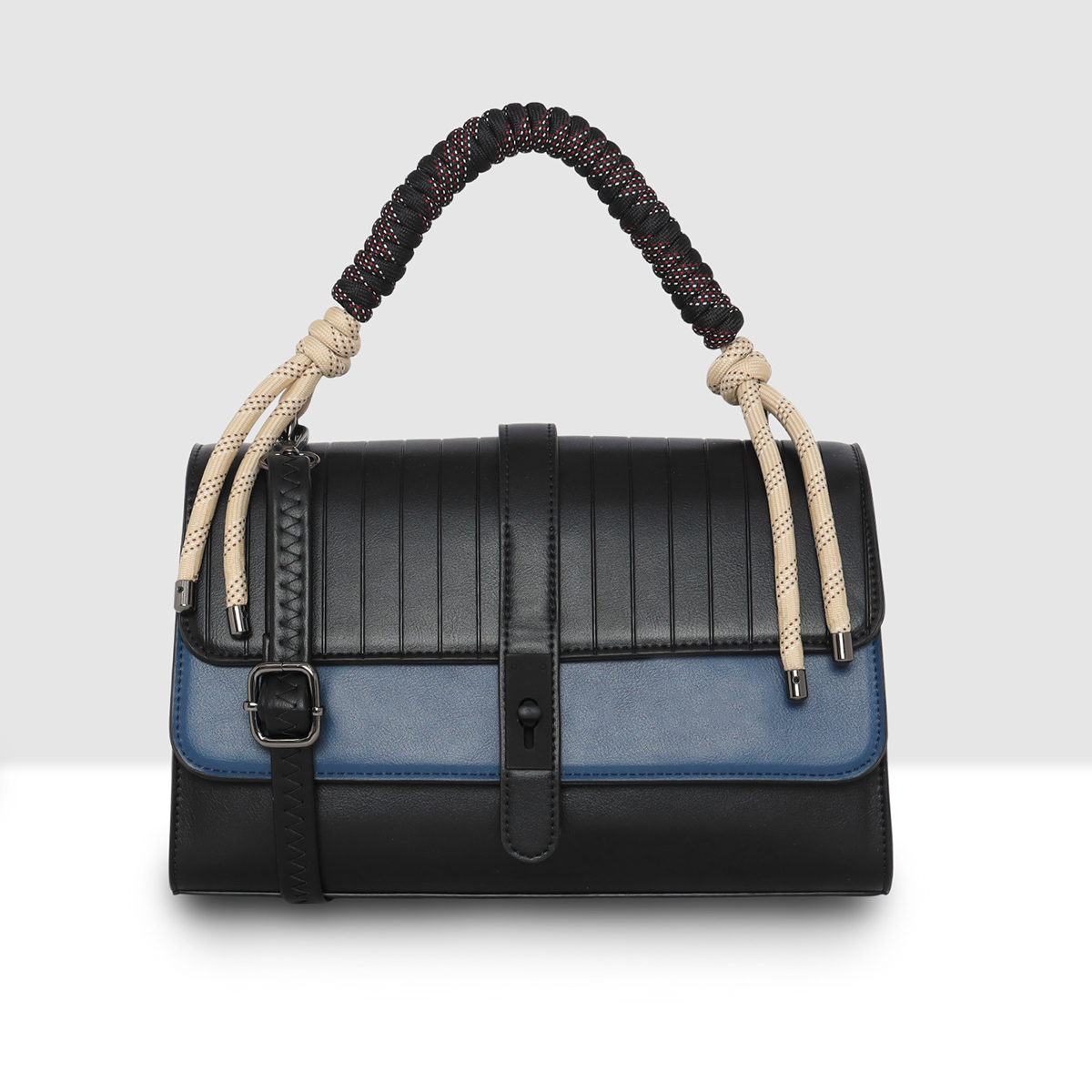 ESBEDA Black Blue Color Celeste Rope Accent Handbag for womens