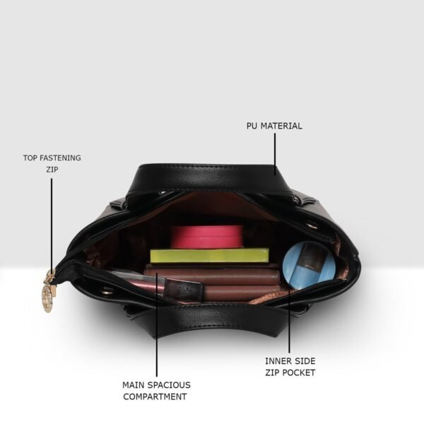 • Inside, the spacious main compartment and inner side zip pocket keep your essentials neatly organized. With its timeless design and ESBEDA?s signature metallic logo,