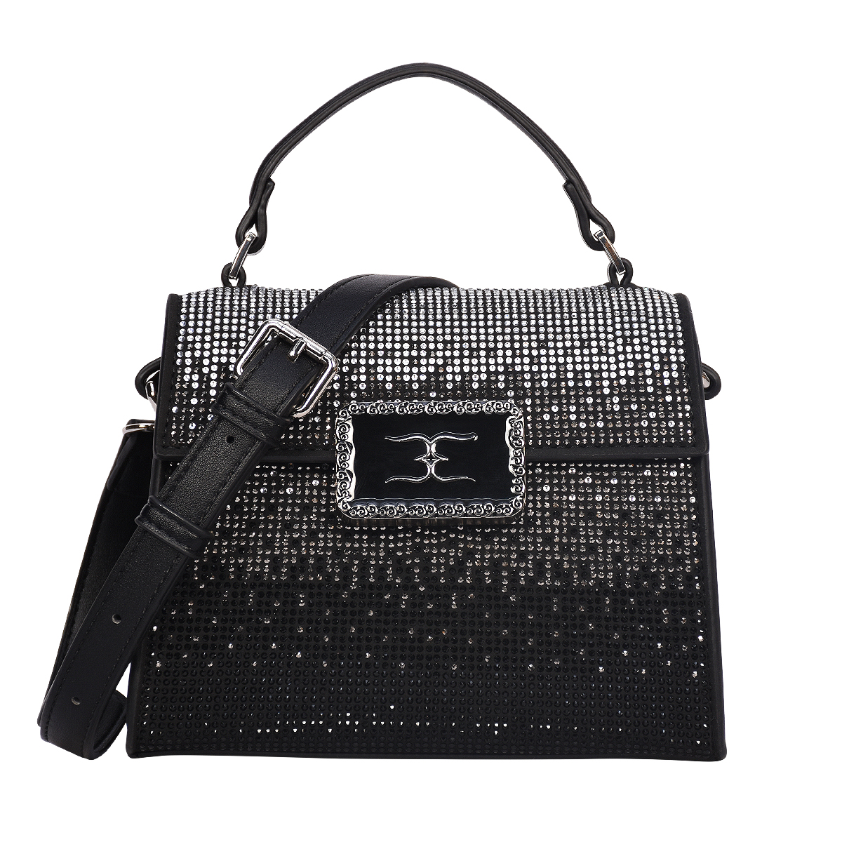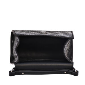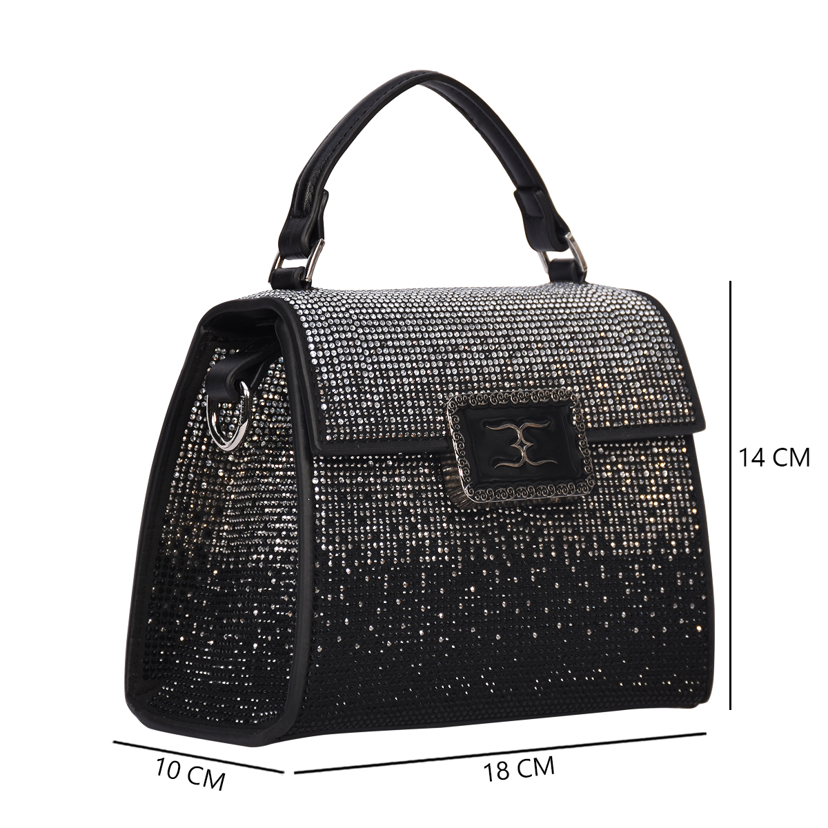 The ESBEDA Crystal Crest Handbag is designed to make a bold style statement. Featuring an all-over crystal-studded texture and a structured silhouette, this handbag exudes elegance and glamour from every angle.