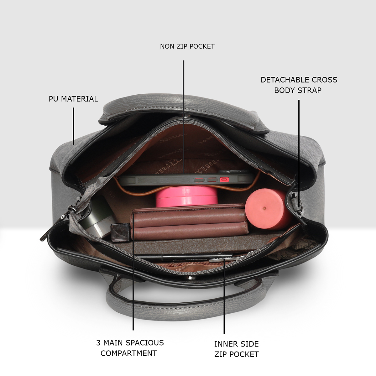 ESBEDA Black Grey colour Urban Luxe Structured Handbag for womens