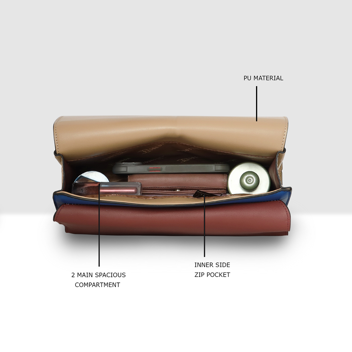 • This handbag showcases a bold colorblock design that adds a fresh and fashionable statement to any outfit.