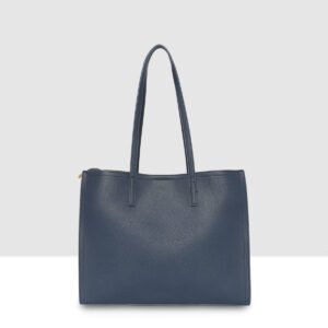 • Crafted from premium textured PU Material, this tote features a sleek and minimalistic design with a gold-toned logo for understated elegance.