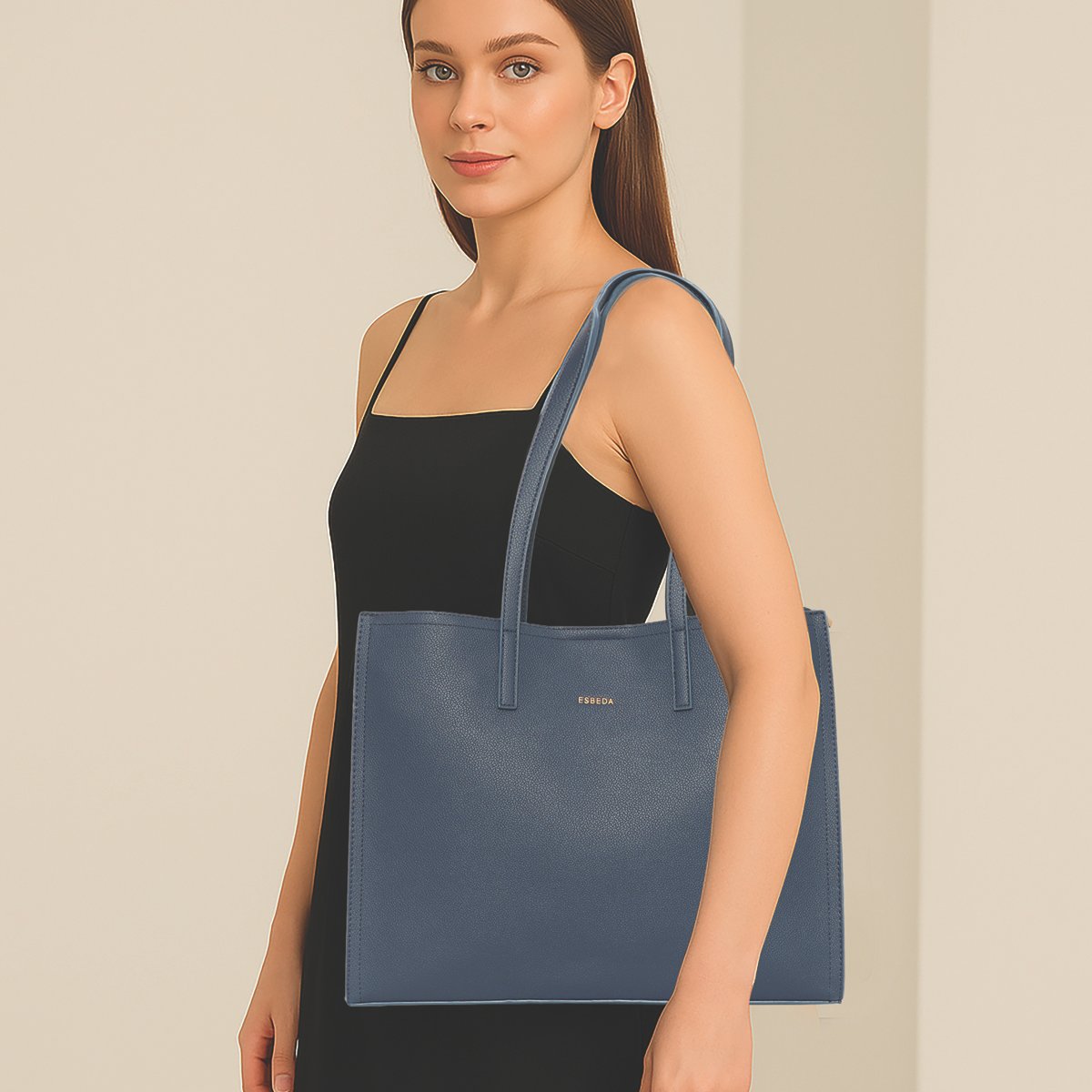 ESBEDA Blue Colour Classic Structured Tote Handbag For Women