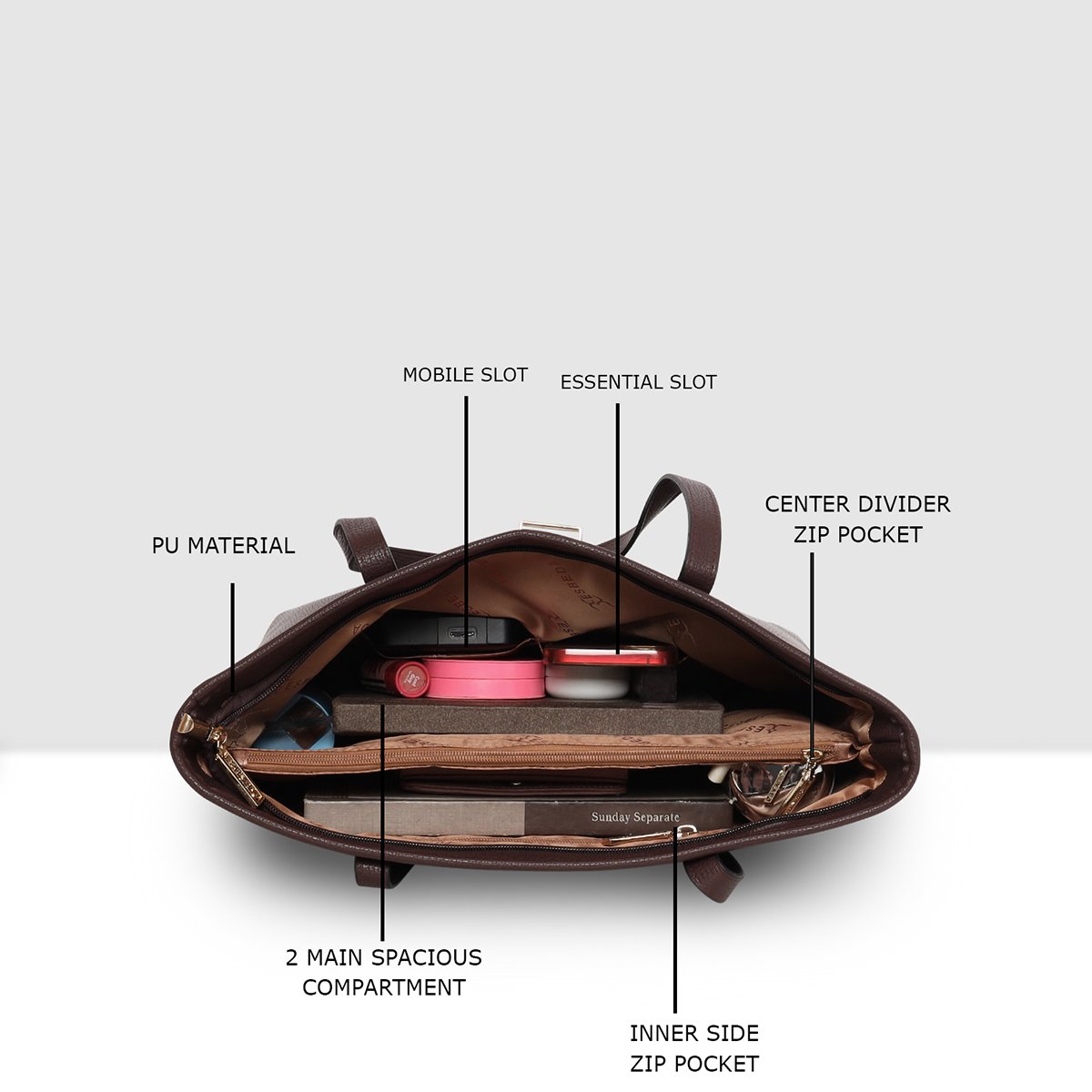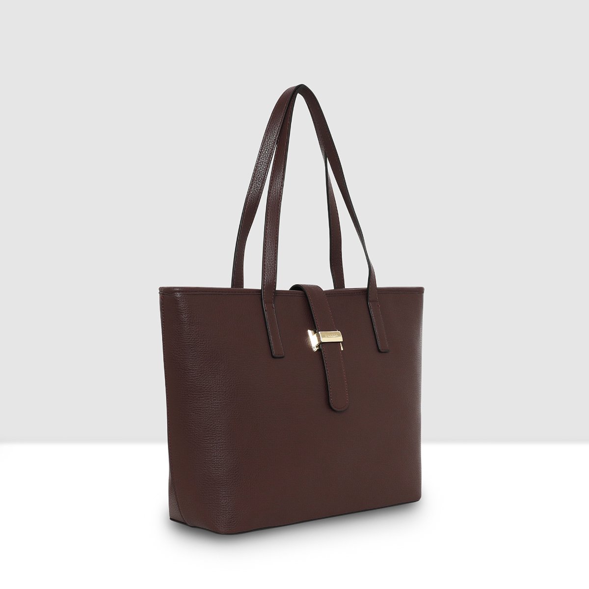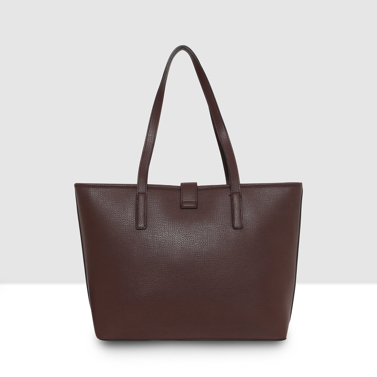 This elegant handbag is crafted from textured faux leather, featuring dual shoulder straps and a sleek front strap for a refined finish. Its spacious interior makes it perfect for everyday essentials while complementing both casual and formal looks.