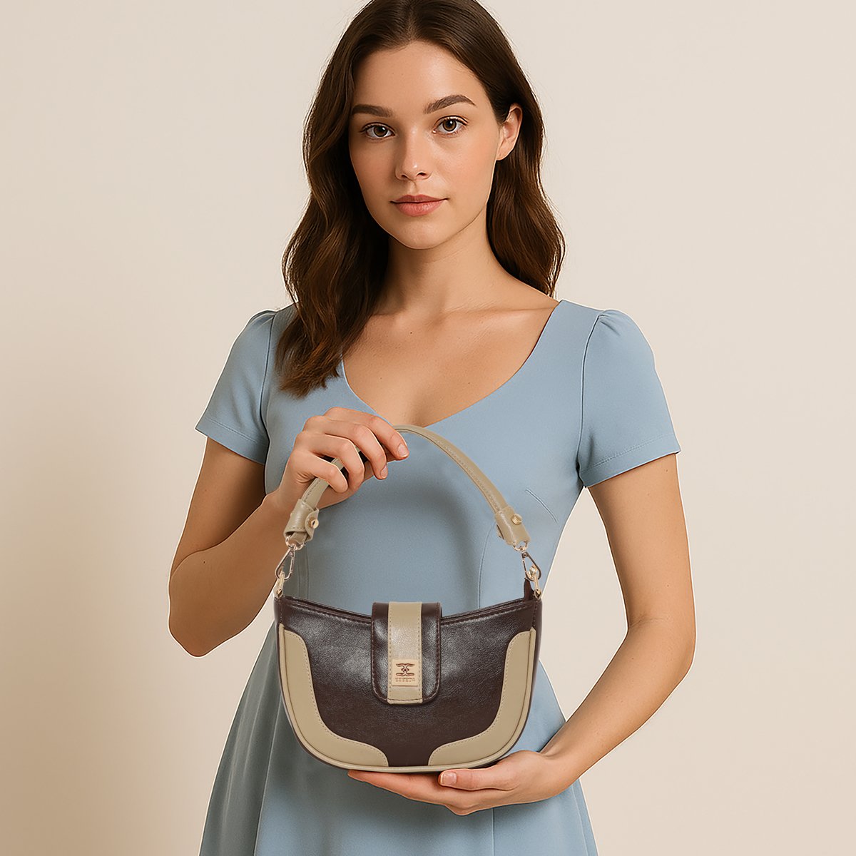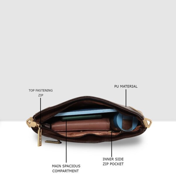 The Esbeda Dual-Tone Chic Sling Bag is a stylish accessory crafted for women. Made from high-quality PU material, it features a striking Dual Color body highlighted accent for a classy dual-tone look.
