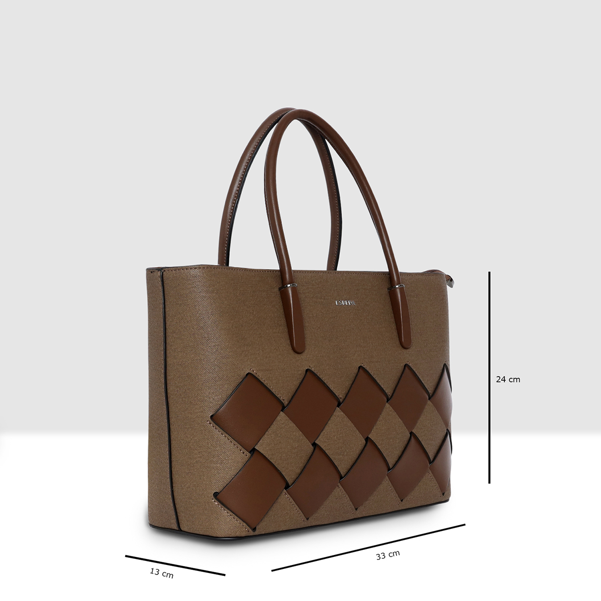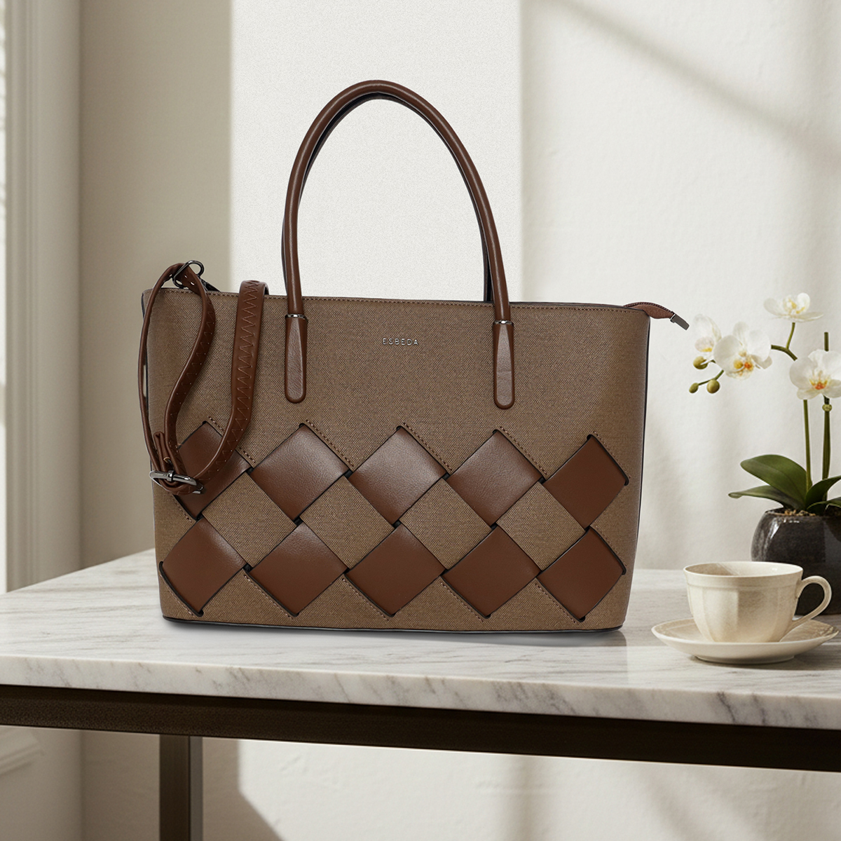 This handbag features a refined woven front panel that adds texture and depth to its clean, structured silhouette, this handbag is perfect for office wear, meetings, and everyday outings.