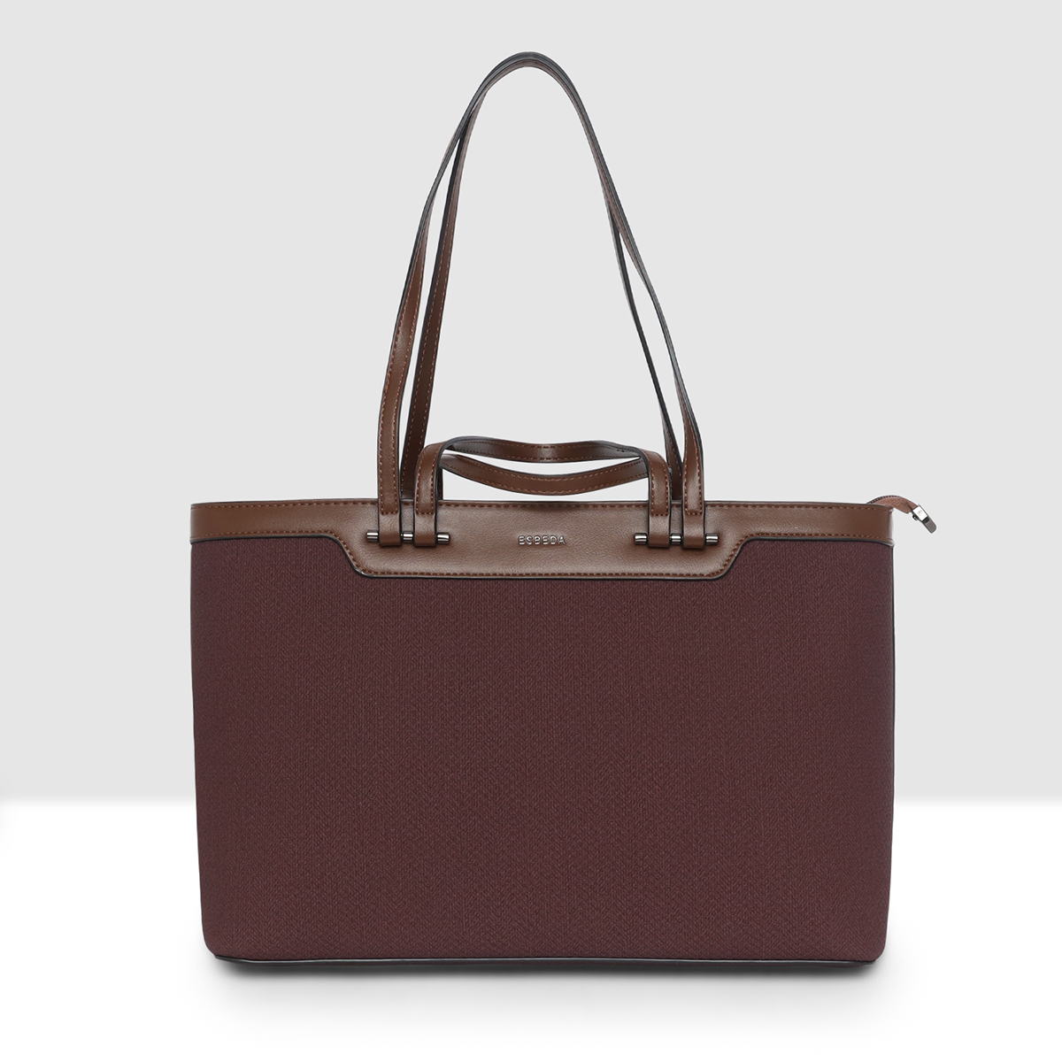ESBEDA Burgundy Color Duo Carry Structured Tote Handbag For Women