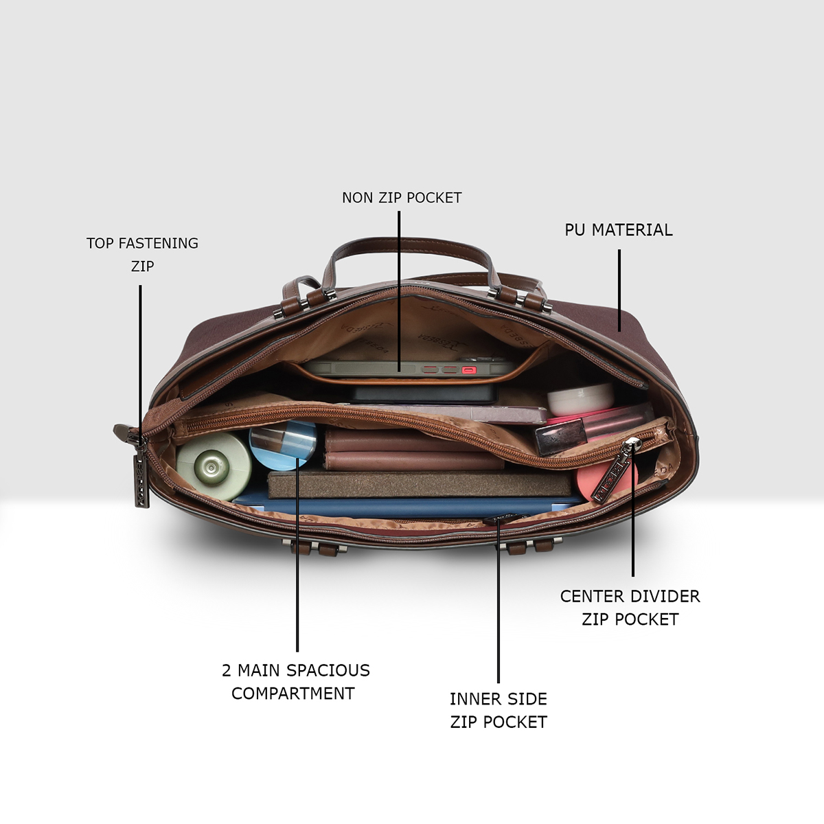 • Includes four functional pockets, including a center zip divider and inner zip pockets. Secure top zip closure keeps belongings safe for office, daily, and travel use.
