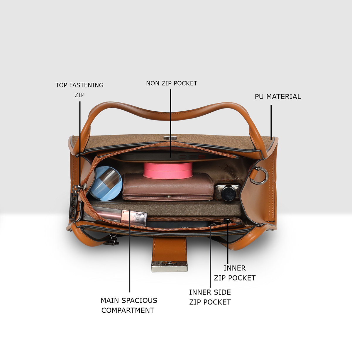 The MISS ESBEDA Structured Top-Handle Handbag is crafted for refined everyday elegance. Designed with a clean trapeze-shaped silhouette, this handbag features a textured body complemented.