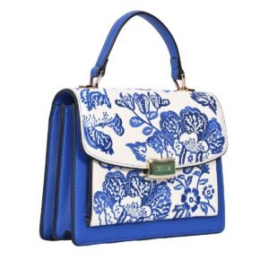 Elevate your style with the Esbeda FloraLuxe Embroidered Top-Handle Bag, a perfect blend of luxury and artistry, Crafted with exquisite floral embroidery on a soft cream backdrop, this handbag stands out for its timeless elegance,creates a sophisticated dual-tone look suitable for both day and evening wear.