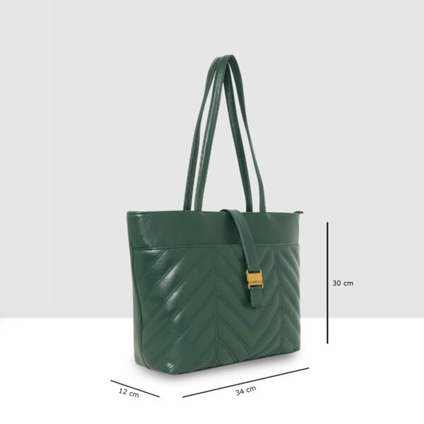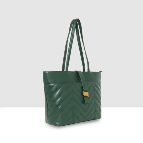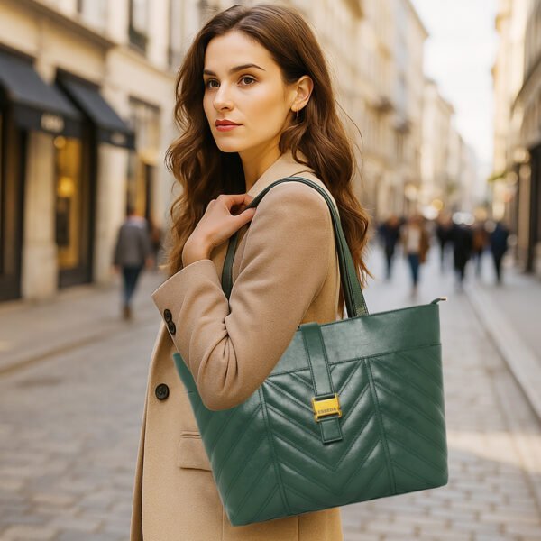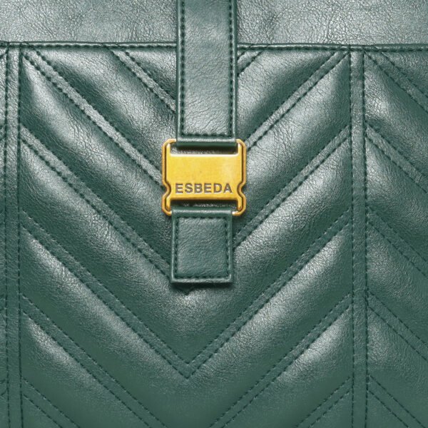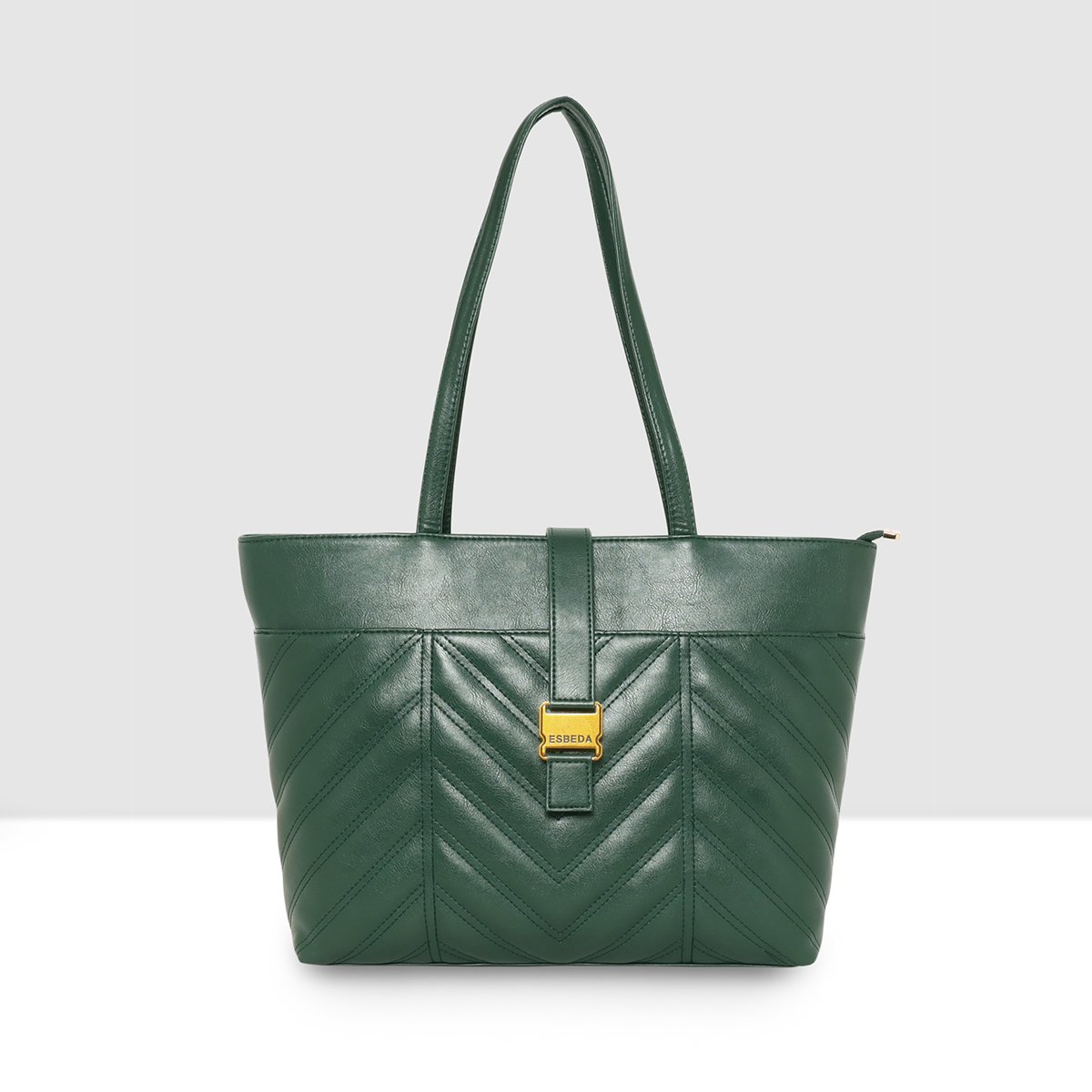 This sophisticated handbag from Esbeda features a chevron-quilted pattern and sleek dual handles, perfect for everyday elegance. Its gold-tone branded clasp adds a touch of luxury, while the spacious interior ensures all your essentials stay organized and accessible.