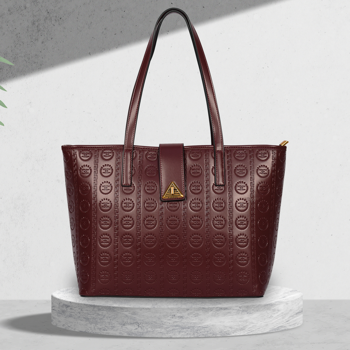 Esbeda Maroon Color Embossed Signature Tote Handbag for womens