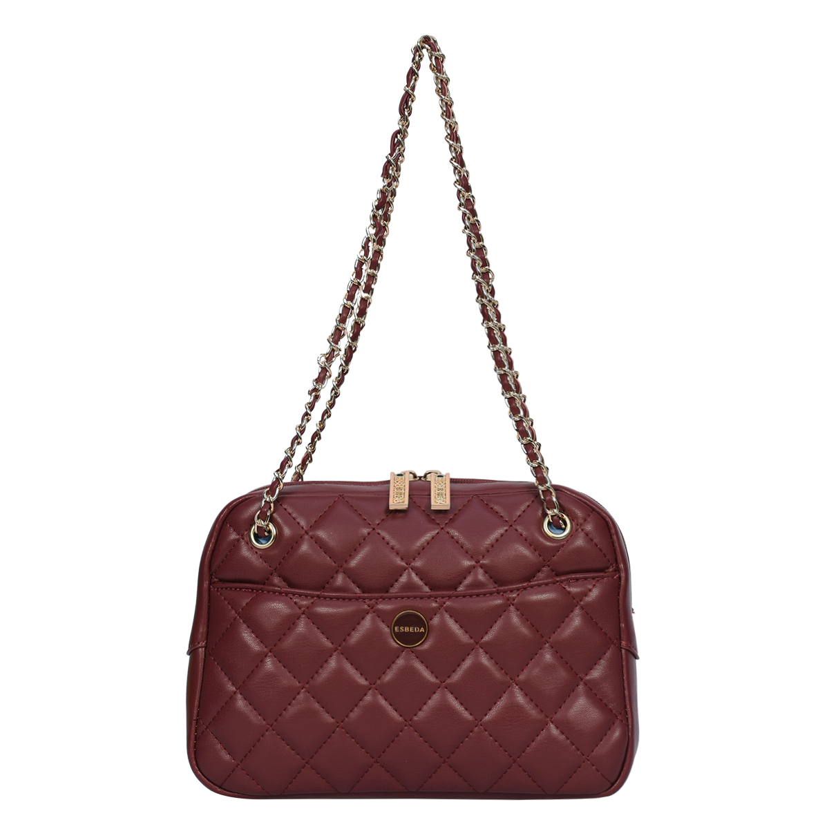 ESBEDA Maroon Color Quilted Luxe Chain Sling Bag for women