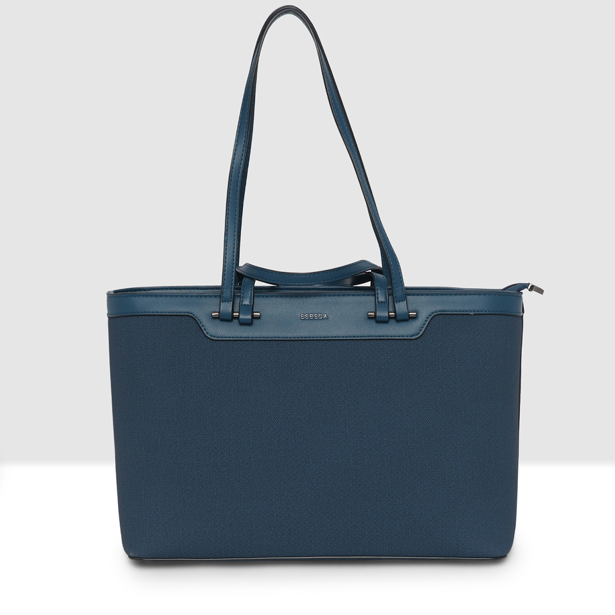 ESBEDA Navy Blue Color Duo Carry Structured Tote Handbag For Women