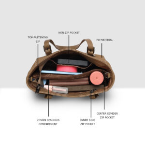 • The structured tote design provides ample space to carry daily essentials, office items, and personal belongings.