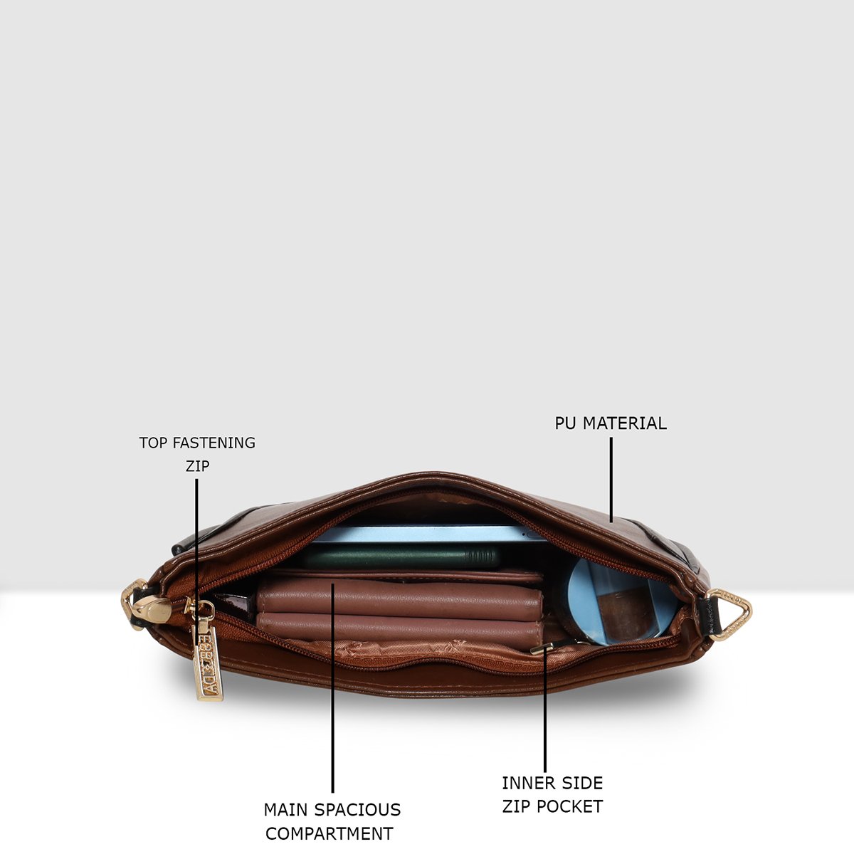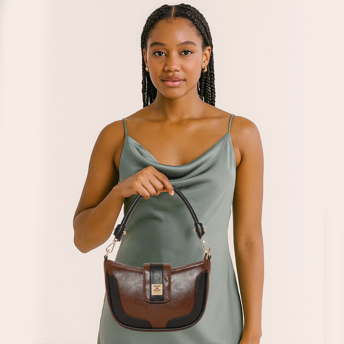 The Esbeda Dual-Tone Chic Sling Bag is a stylish accessory crafted for women. Made from high-quality PU material, it features a striking Dual Color body highlighted accent for a classy dual-tone look.