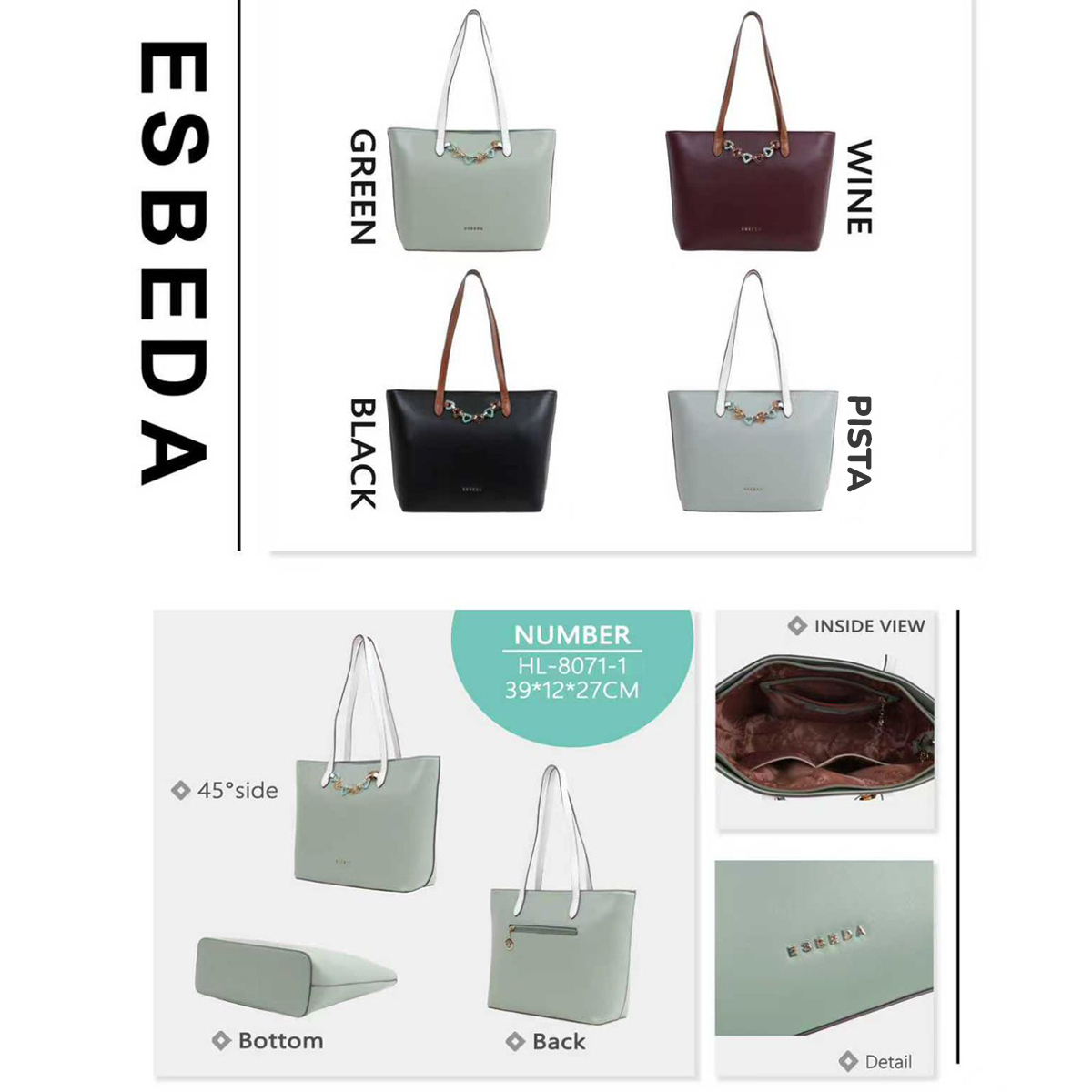 • Handbag Dimension LHW : 39 X 27 X 12 CM