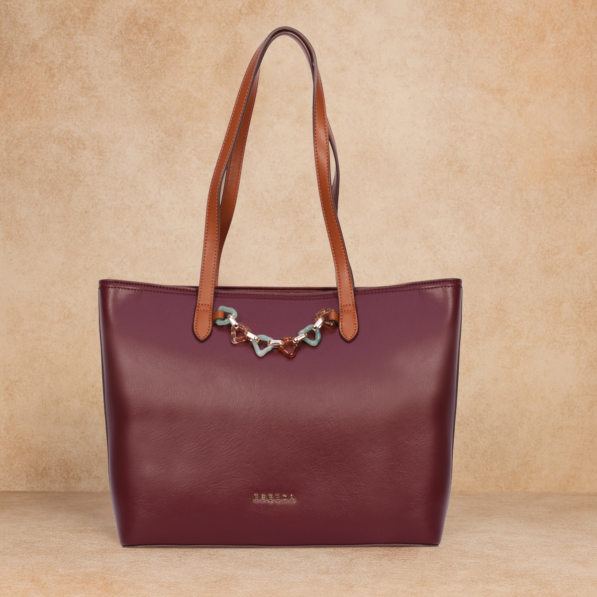 ESBEDA Wine Color Signature Chain Tote Handbag For Womens