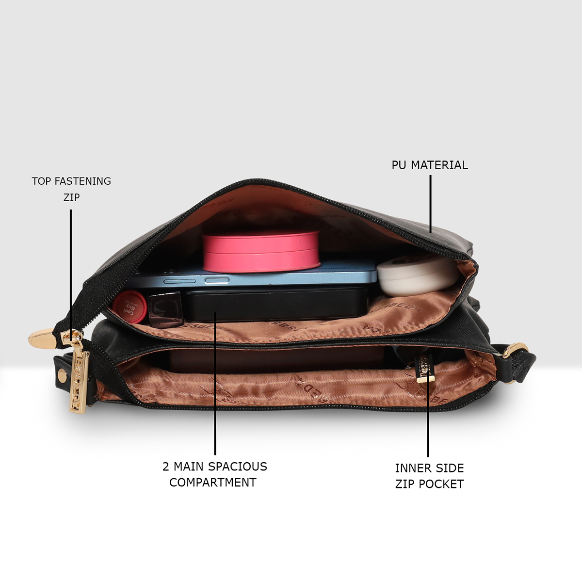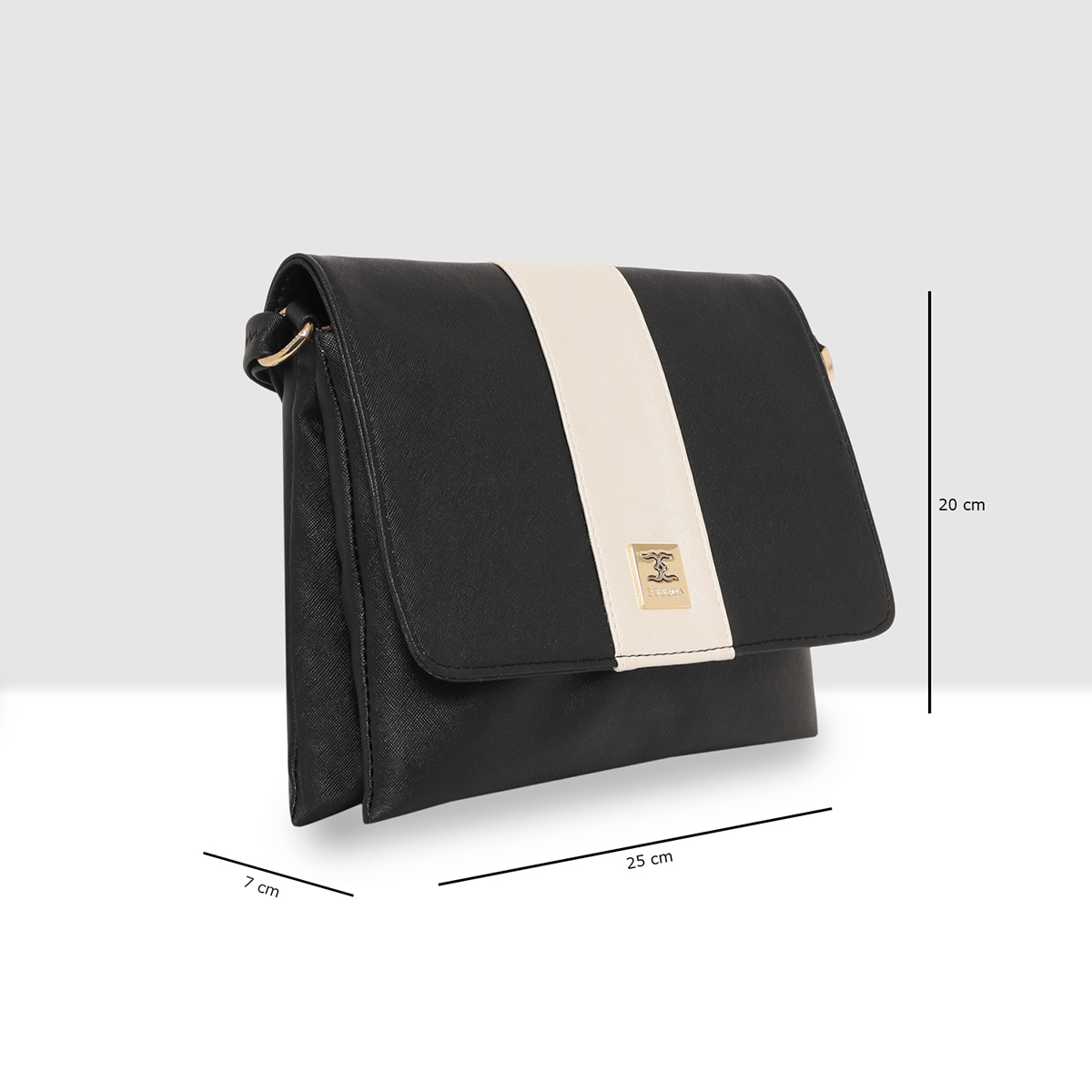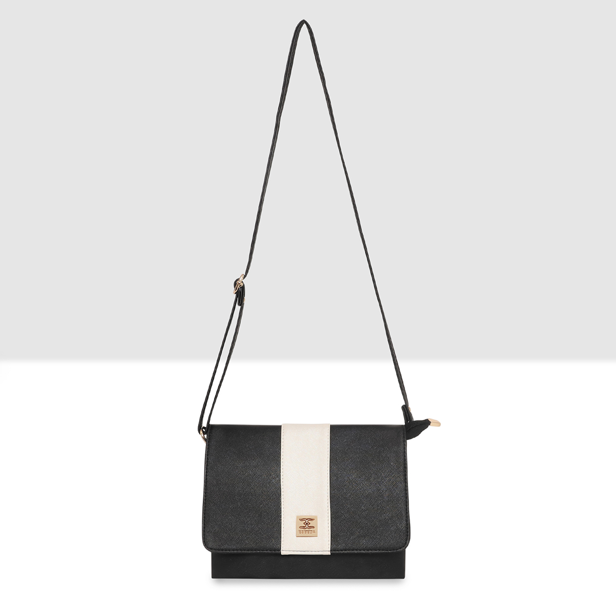 ESBEDA Black Bobbie Colorblock Textured PU Flap Sling Bag For Women