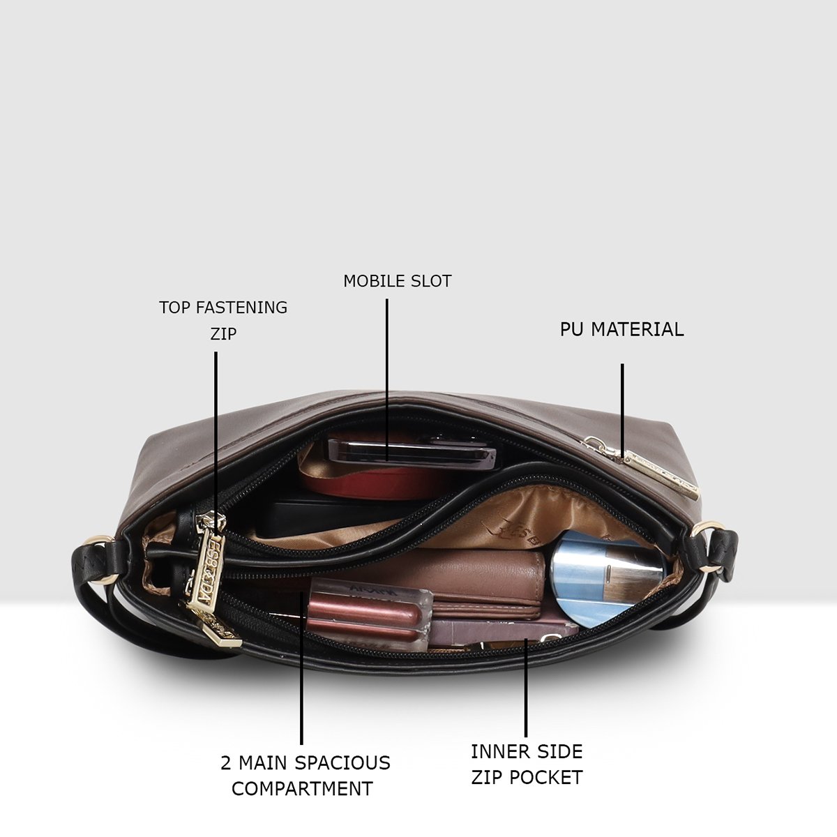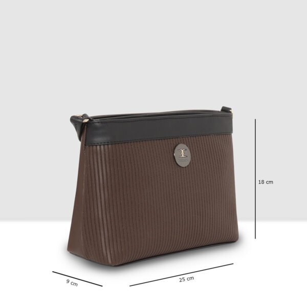 The Esbeda Dual-Tone Striped Sling is a perfect mix of sophistication and practicality. Made of high-quality PU material, this handbag features a stylish design with vertical stripe texture.