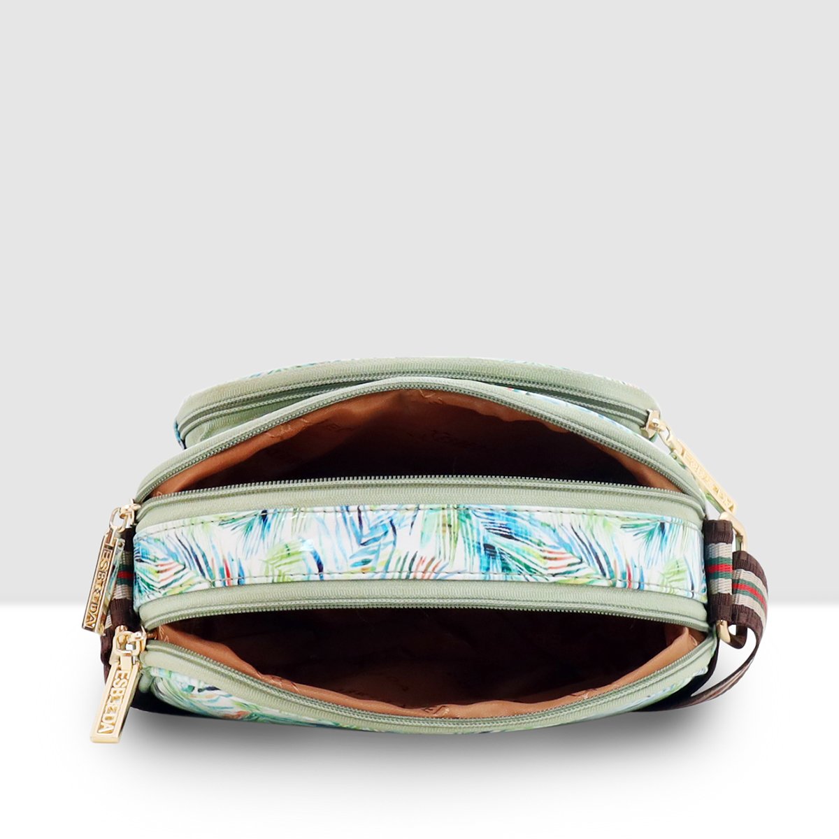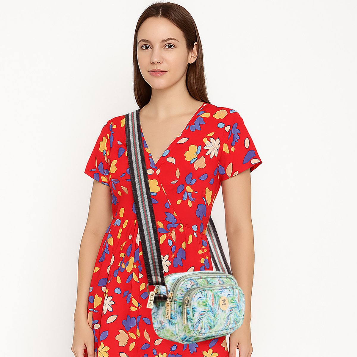 The Esbeda Bloom Print Sling brings a splash of color and elegance to your everyday style. Designed with a vibrant pattern, this sling bag is crafted from premium PU material for durability.
