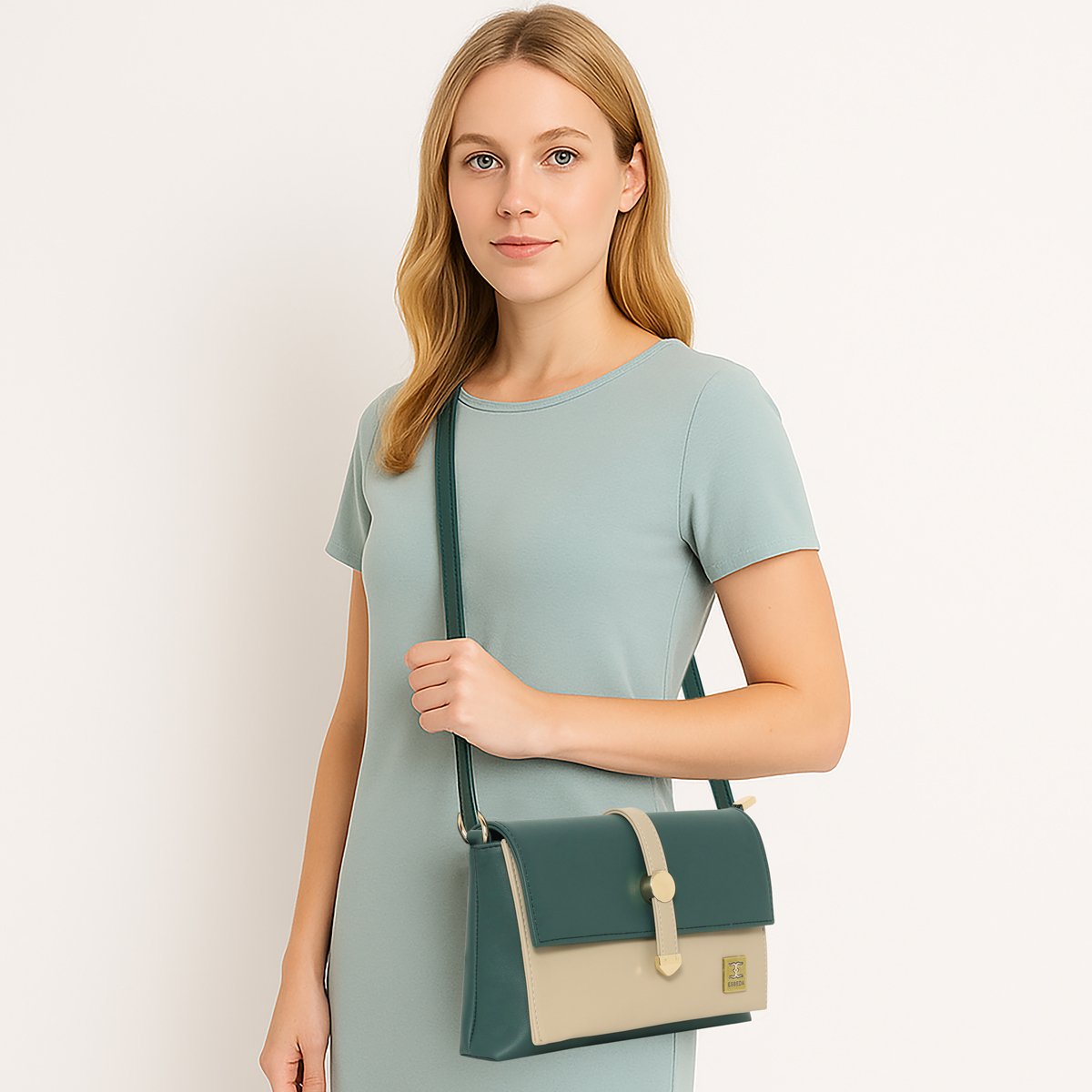 The Esbeda Dual-Tone Elegance Sling is designed for women who love chic style with everyday functionality. This bagh secure magnetic flap closure with metal detailing ensures both safety and elegance.