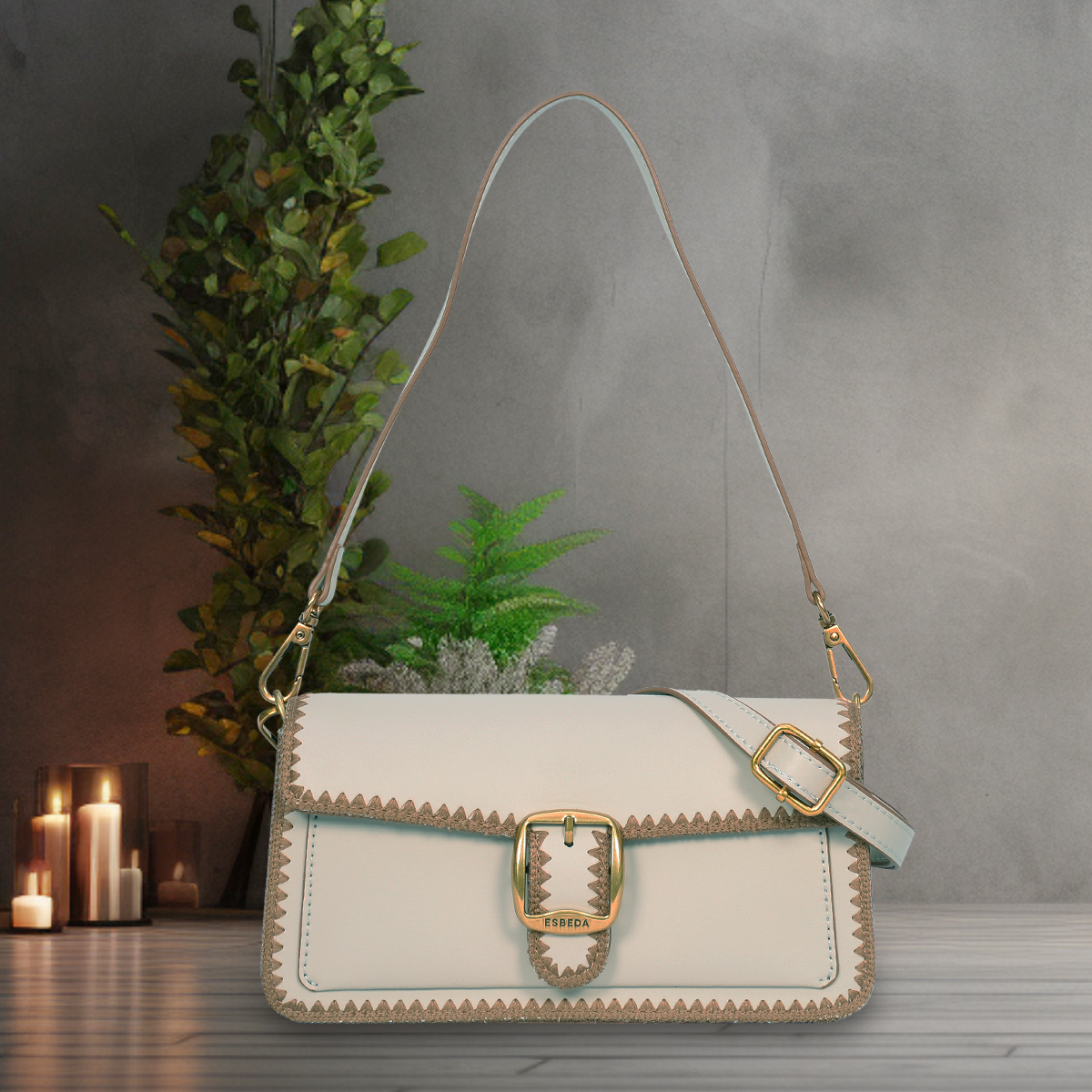 ESBEDA Grey color Trendline Buckle Detail Sling Bag