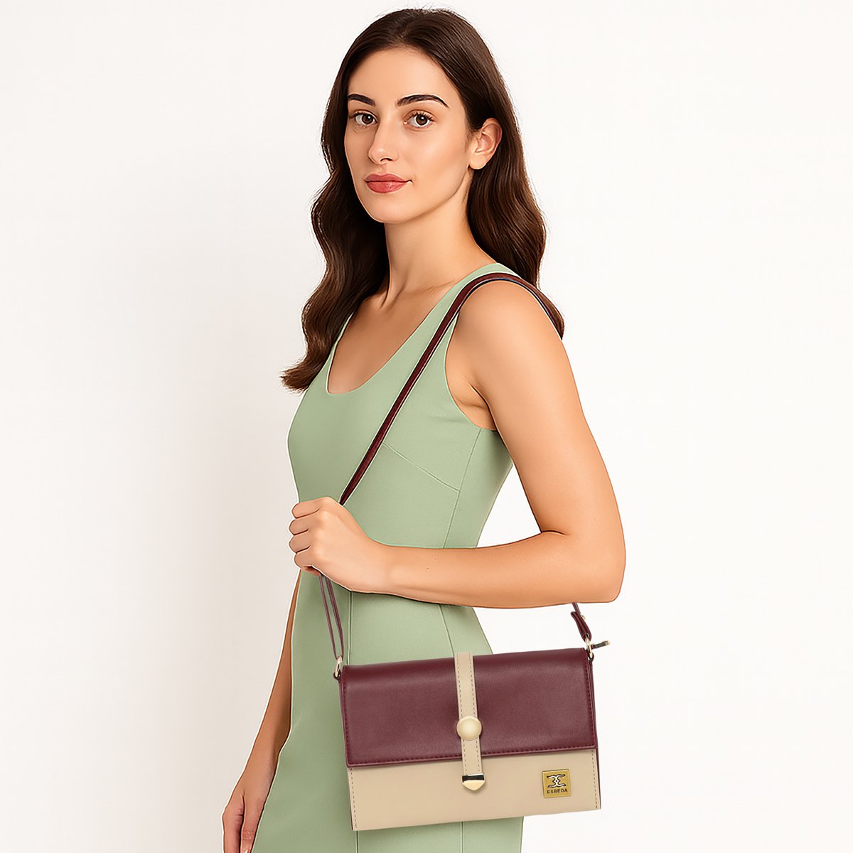 The Esbeda Dual-Tone Elegance Sling is designed for women who love chic style with everyday functionality. This bagh secure magnetic flap closure with metal detailing ensures both safety and elegance.