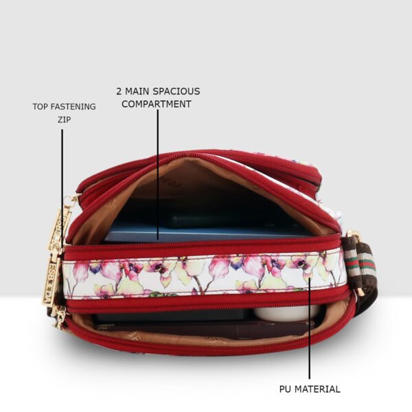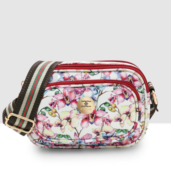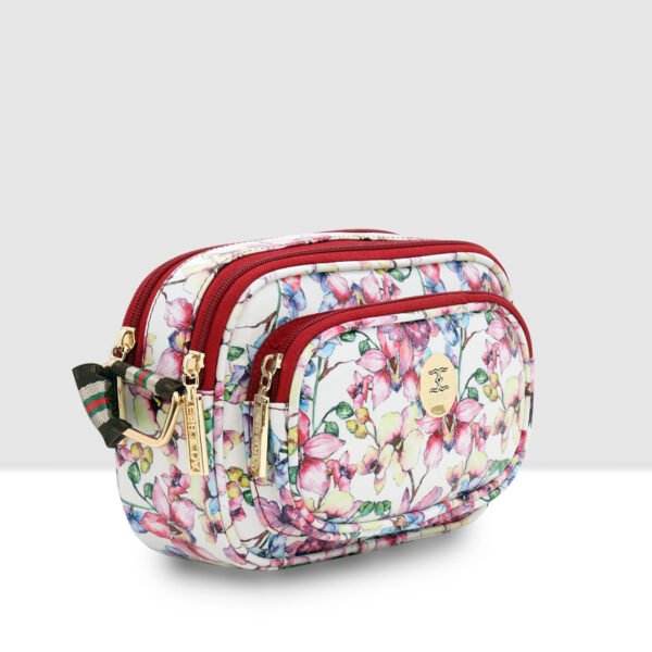 The Esbeda Bloom Print Sling brings a splash of color and elegance to your everyday style. Designed with a vibrant pattern, this sling bag is crafted from premium PU material for durability.