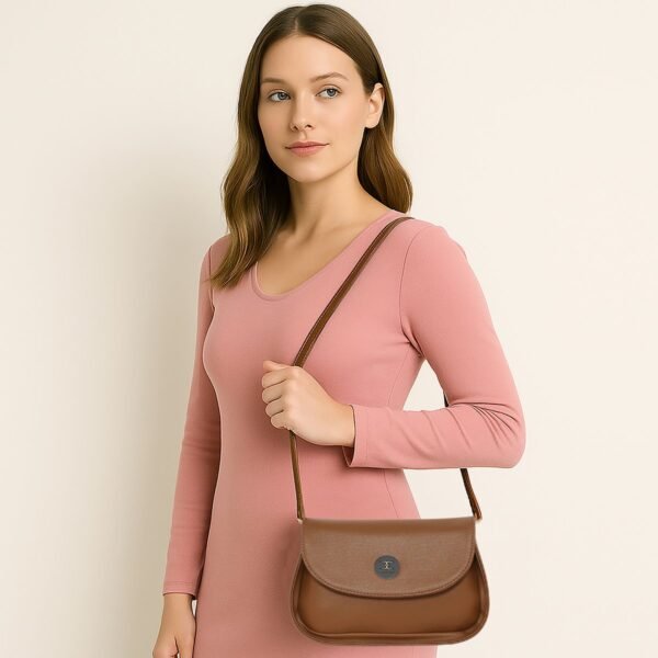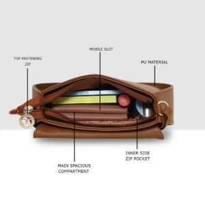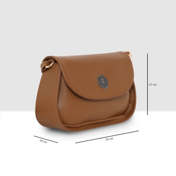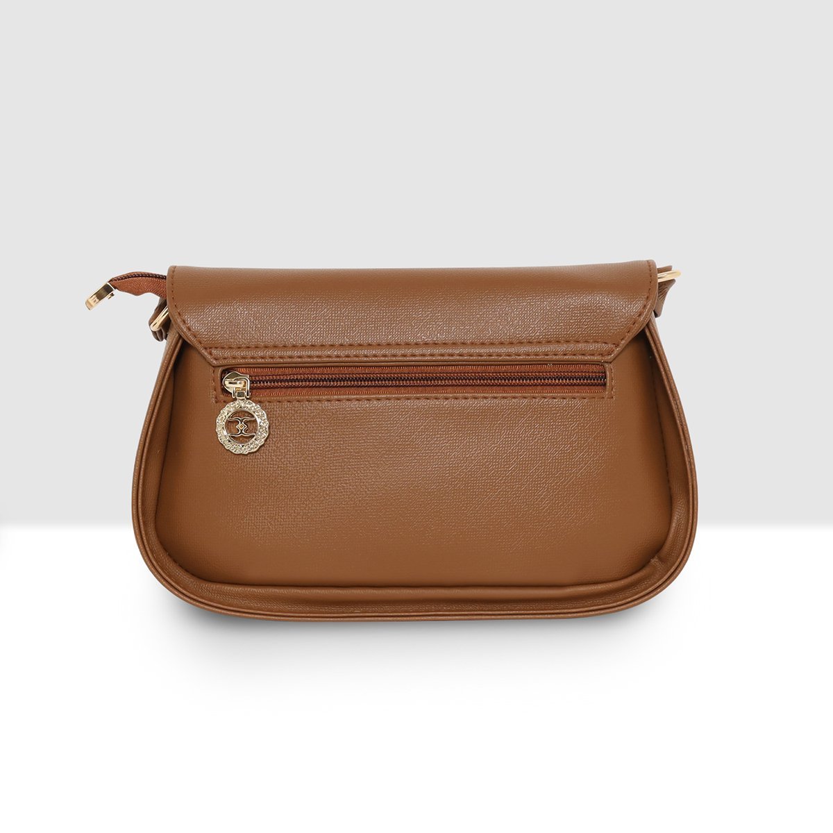 The Esbeda Structured Classic Sling Bag is a stylish companion designed for modern women who value elegance and functionality. Made from high-quality PU material, it features a rich tan finish and a sleek silhouette that complements any outfit.