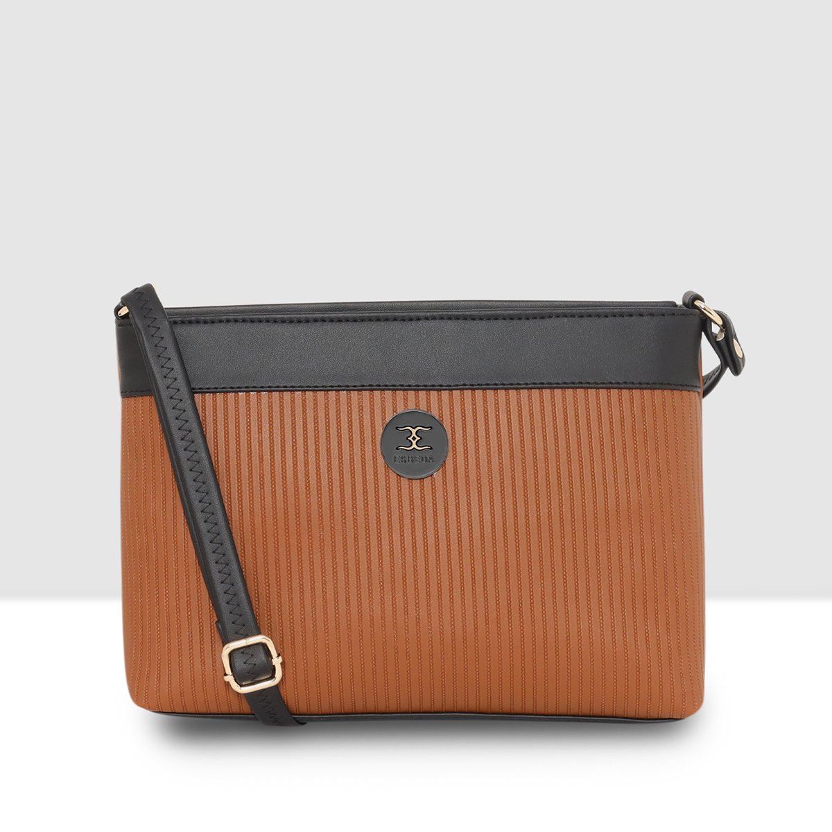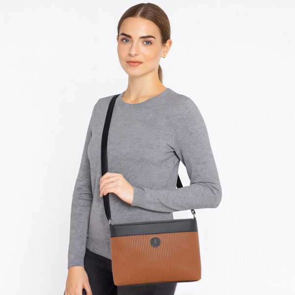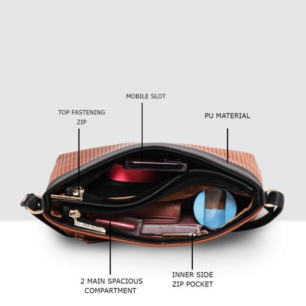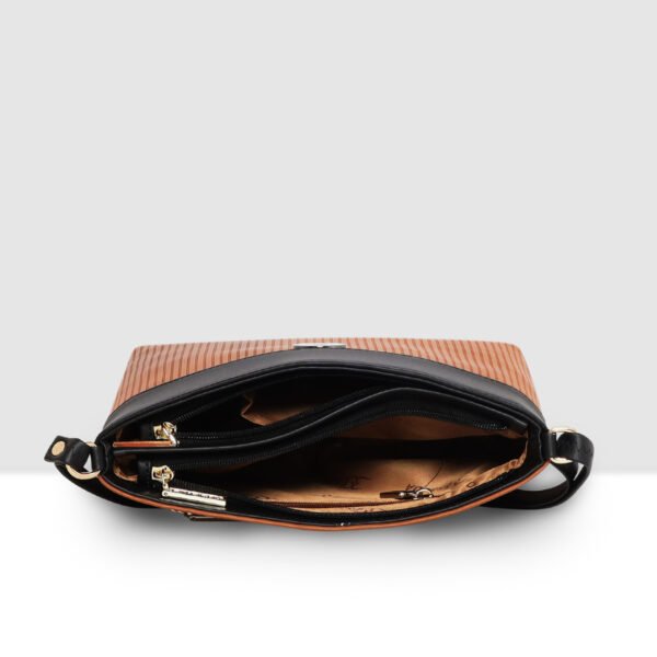 The Esbeda Dual-Tone Striped Sling is a perfect mix of sophistication and practicality. Made of high-quality PU material, this handbag features a stylish design with vertical stripe texture.