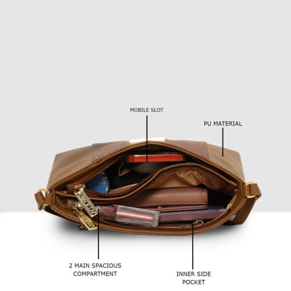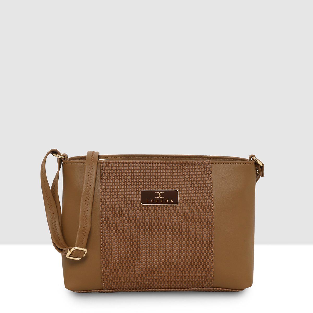 ESBEDA Tan Colour Dual-Zip Textured Sling Bag For Women