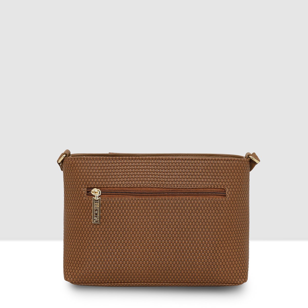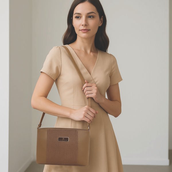 The Esbeda Dual-Zip Textured Sling Bag is the perfect blend of style and functionality. Designed with a unique woven-textured front and smooth PU Material, it offers a sophisticated yet modern appeal.