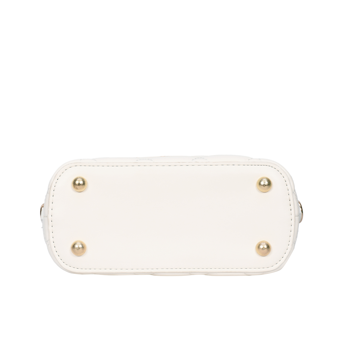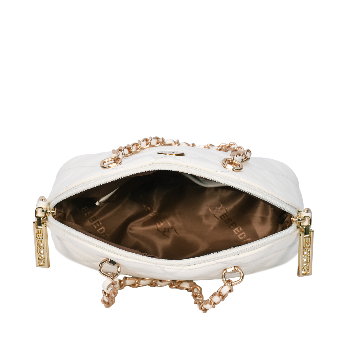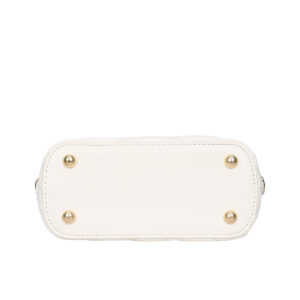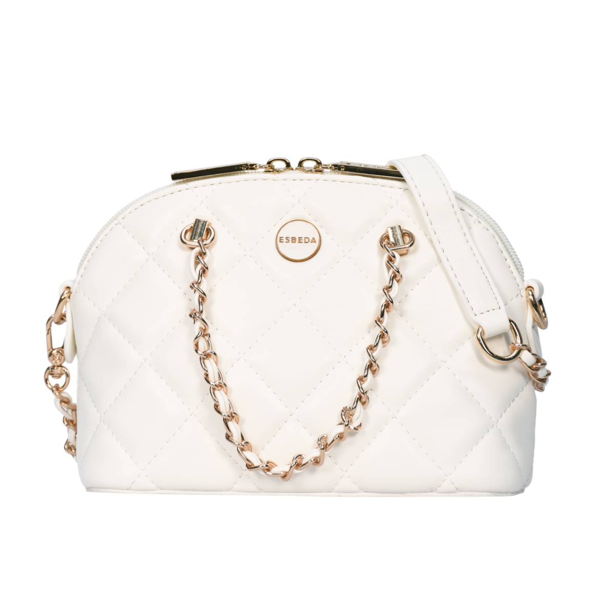 Its dome-shaped structure provides ample space while maintaining a stylish silhouette. The gold-tone chain handle adds a touch of glamour, making it suitable for both day and evening outings. Equipped with smooth dual zippers and protective bottom feet, this slingbag ensures durability and convenience.