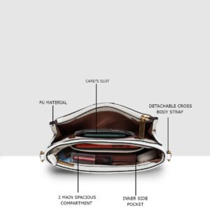 • This sling bag has a zip closure that ensures your essentials stay safe while maintaining a sleek silhouette perfect for both everyday use and special occasions.