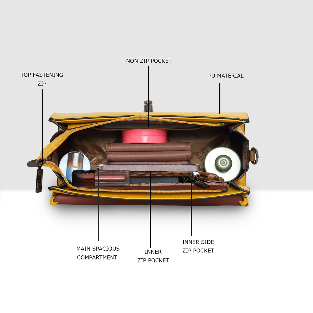 the Esbeda Luna Stitch Flap Slingbag, designed for effortless elegance and everyday convenience. With secure twist-lock closure ensures your belongings stay protected.