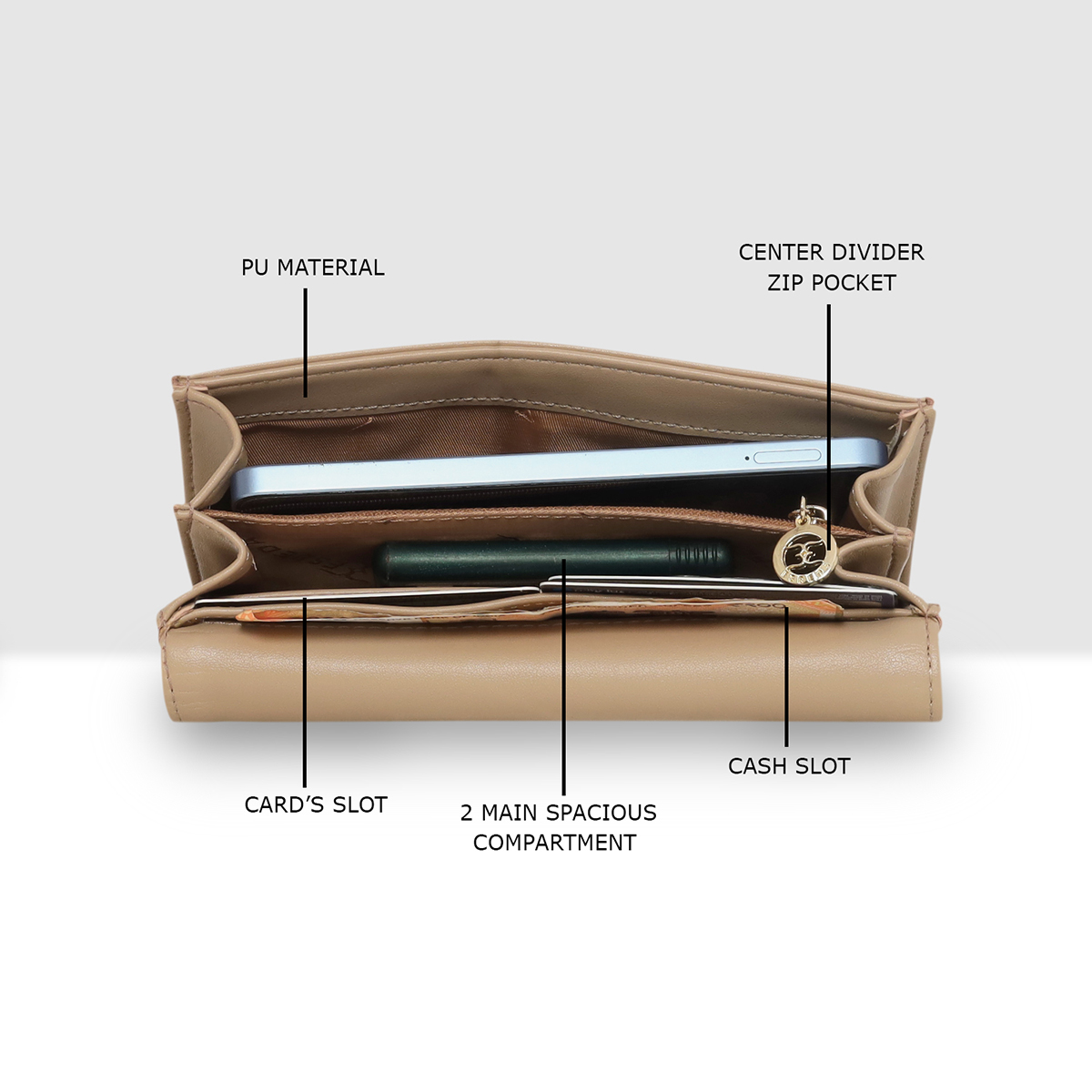 The Esbeda Classic Elegance Women?s Wallet blends timeless design with modern practicality. this wallet showcases a refined Solid color accented by a metallic gold strip for a touch of luxury.